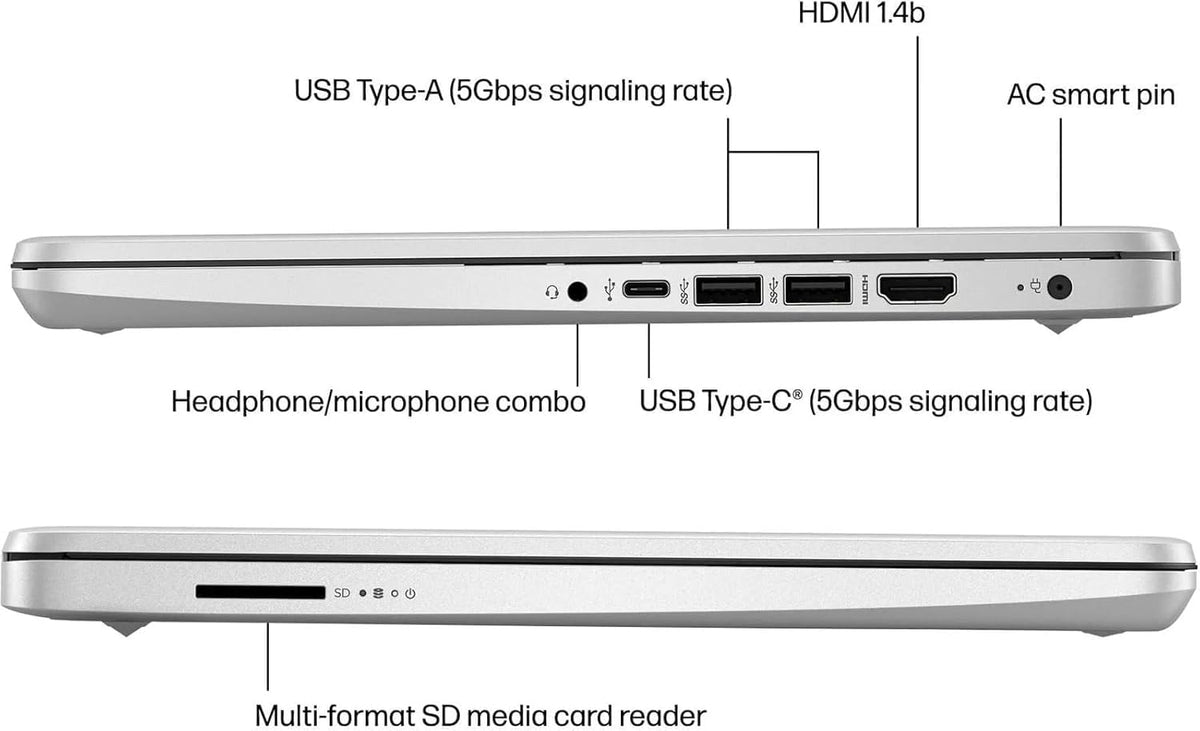 14-Inch Laptop Hp 2024Hp 14 Laptop. Take It With You. See And Do More With This Hp Laptop, Which Features A Thin And Light Design, A 6.5Mm Micro-Edge Display, And A Screen-To-Body Ratio Of Up To 79%. Reliable Everyday Performance: This Computer Is Powerful Enough For Your Busiest Days, Equipped With Intel Processors And Reliable Flash Storage At An Excellent Value. Powerful And Efficient. All Day. With Long Battery Life And Fast Charging Technology, This Laptop Keeps You Working, Watching, And Staying Connected All Day. The Integrated Precision Touchpad Supports Multi-Touch For Faster Navigation And Increased Productivity. Microsoft Office Lifetime License Is Included.Memory: 8Gb Ddr4 Ramstorage: 384Gb Storage (128Gb Emmc + 256Gb Msd)Graphics:Intel Uhd Graphics 605Systemwindows 11 Prowireless: Wi-Fi 5 And Bluetoothstay Connected To Wi-Fi And Bluetooth Accessories With Wireless Technology.Dimensions: 12.76 X 8.86 X 0.71, 3.24 Lbsports:1 X Hdmi Output2 X Usb-A 3.0, 1 X Usb-C 3.01 X Headphone/Microphone Combo Jack1 X Sd Media Card Readerbattery Life: Up To 11 Hours 30 Minutes Of Battery Life. Up To 11 Hours 30 Minutes (Video Playback); Up To 9 Hours (Wireless Streaming)Hp Fast Charge: Hp Fast Charge Technology Charges Your Laptop From 0% To 50% In About 45 Minutesmanufacturers Warranty: 1 Year