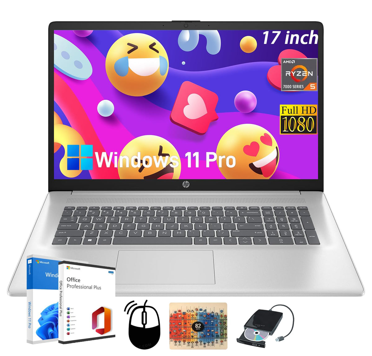 Hp 17 Inch Business Laptop Computer - Office Lifetime, 17.3 Fhd+ Display, Amd Ryzen 5 7430U(Beats I7), Amd Radeon Graphics, Wind