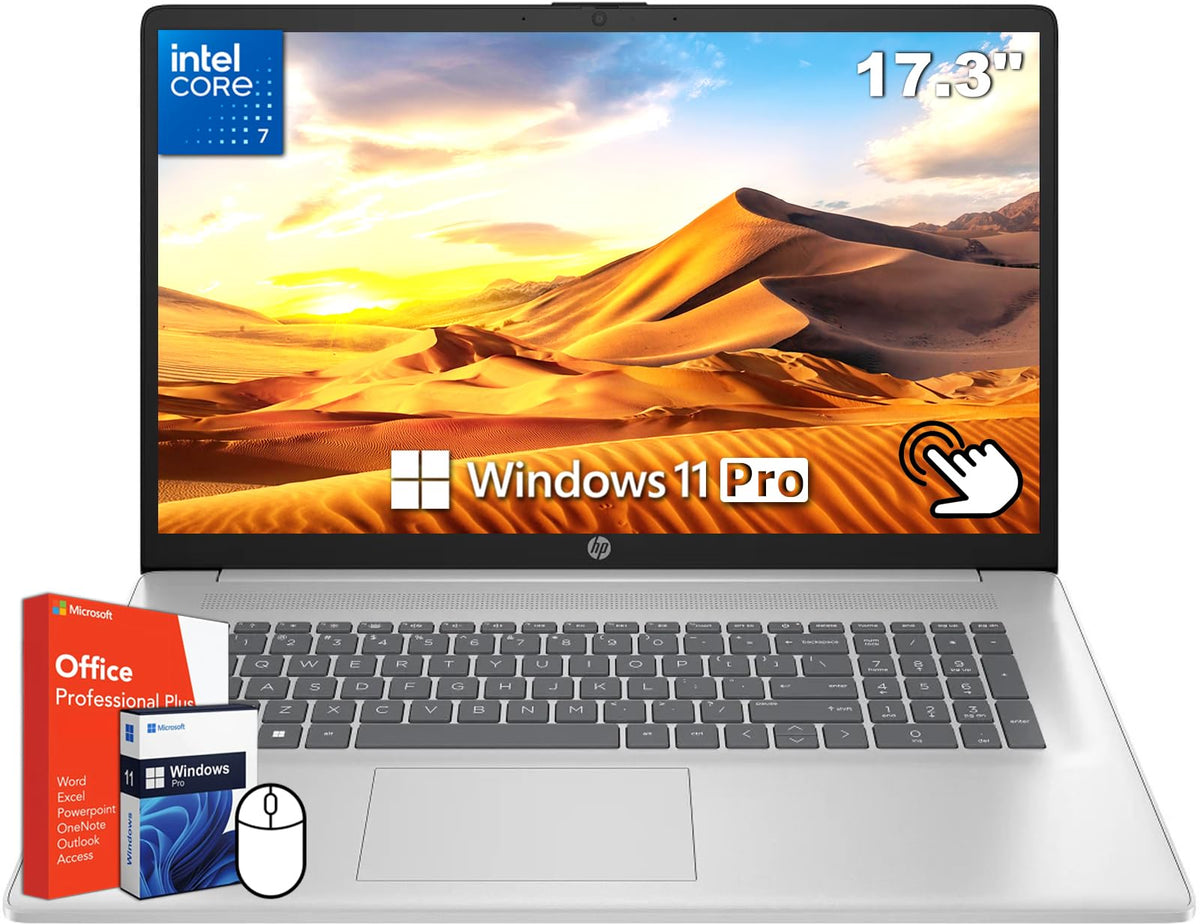 Hp 17 Inch Laptop, 17.3 Hd+ Touchscreen Display, Microsoft Office Lifetime License & Windows 11 Pro, Core 7-150U Processor, 64 G
