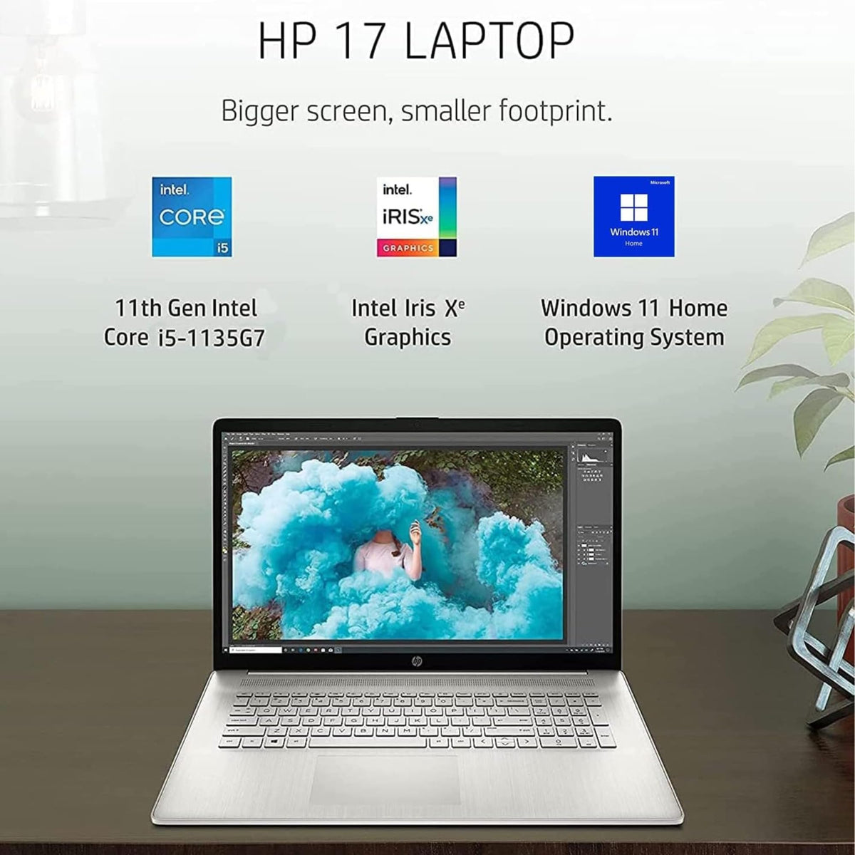 Processor: 11Th Gen Intel Core I5-1135G7 2.40Ghz Quad-Core Processor (8Mb Intel Smart Cache, Up To 4.20Ghz) Graphics: Intel Iris Xe Graphics Operating System: Windows 11 Home 64-Bit Memory:32Gb Ddr4 Sdram Hard Drive: 1Tb Pcie Nvme M.2 Solid State Drive Display: 17.3 Fhd (1920X1080) Ips, Anti-Glare Connectivity: 802.11A/B/G/N/Ac (2X2) Wi-Fi And Bluetooth Combo Audio: Hd Audio With Stereo Speakers Keyboard: Us English, Full Size Keyboard Built-In Hd Webcam: Hp True Vision 720P Hd Camera With Integrated Dual Array Digital Microphones Media Drive: Multi-Format Sd Media Card Reader Ports: 1 X Superspeed Usb Type-C 5Gbps Signaling Rate 2 X Superspeed Usb Type-A 5Gbps Signaling Rate 1 X Ac Smart Pin 1 X Hdmi 1 X Headphone / Mic Combo Jack Battery: 3-Cell, 41 Wh Color: Silver Dimensions L X W X H (Inches): 15.78 In (W) X 10.15 In (D) X 0.78 In (H) Weight: 4.60 Lb Accessory: Oydisen Microfiber Cloth