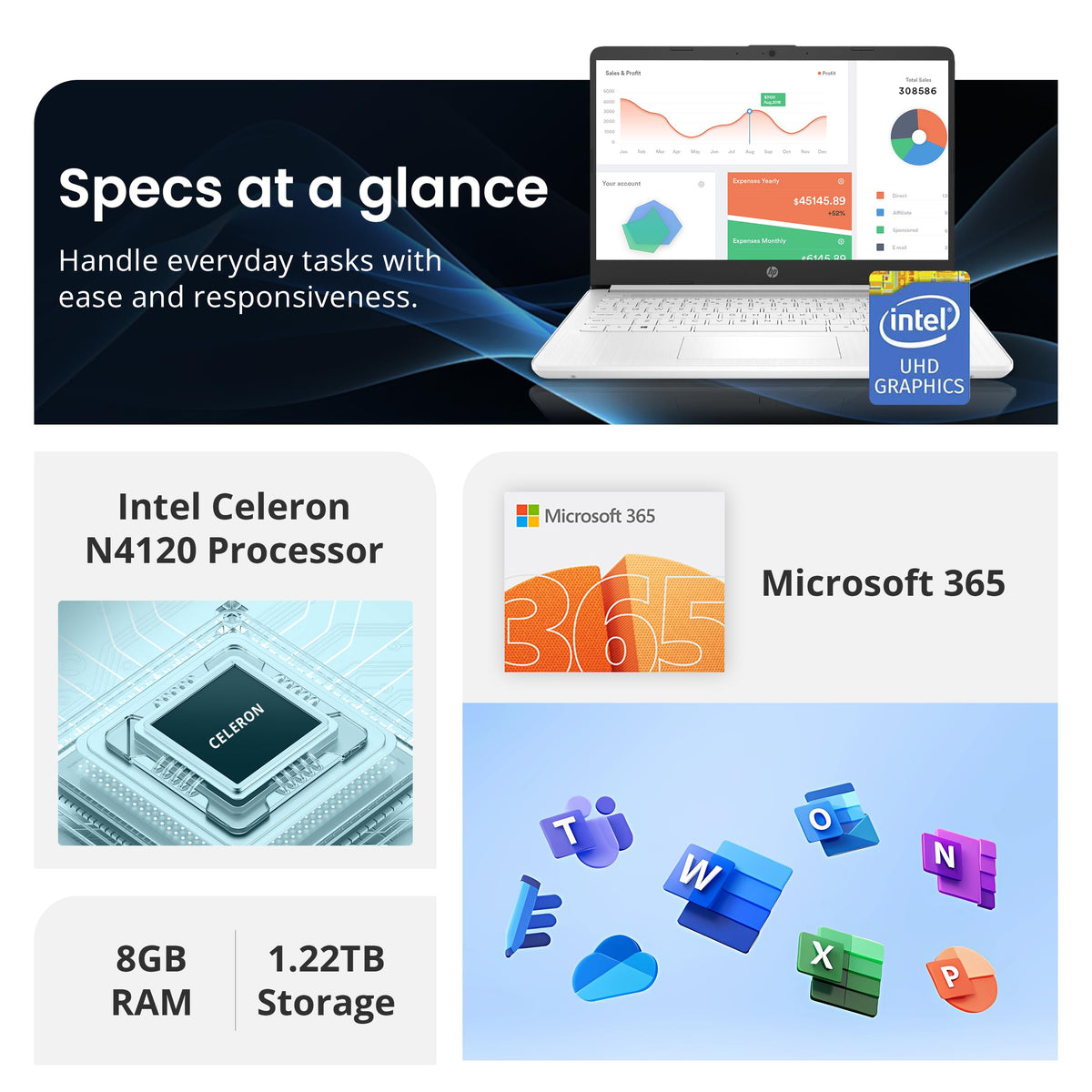 Hp Flagship 14 Hd Laptop With 1 Year Office 365 | 8Gb Ram | 1.22Tb Storage(64Gb Emmc & 160Gb Docking Station Set & 1Tb Cloud Sto