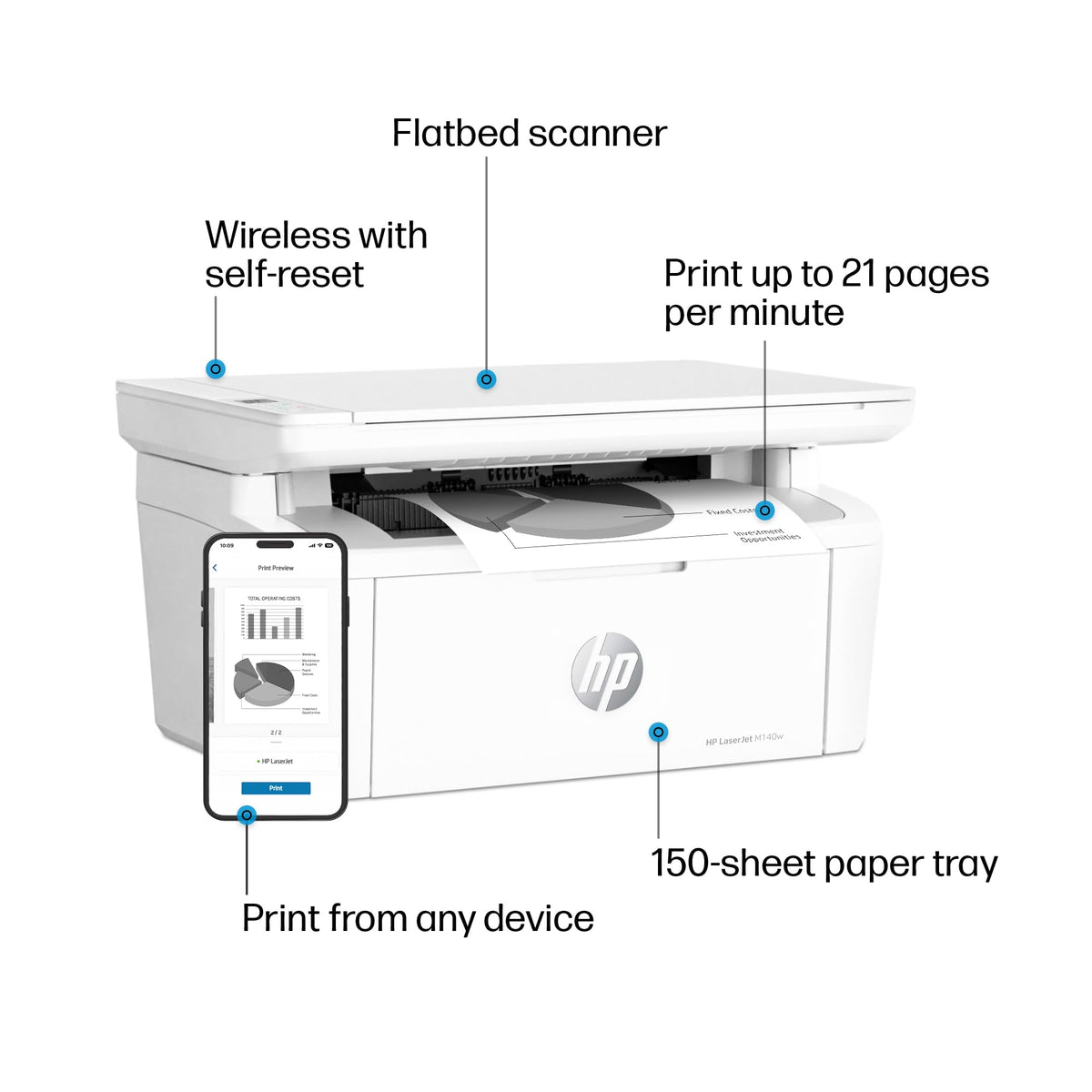 The Worlds Smallest Multifunction Laser Printer In Its Class, The Hp Laserjet Mfp M140W Is Perfect For Printing Black & White Forms And Documents, Plus Scan/Copy. It Offers High-Speed Printing, Seamless Setup And Reliable Connectivity.
