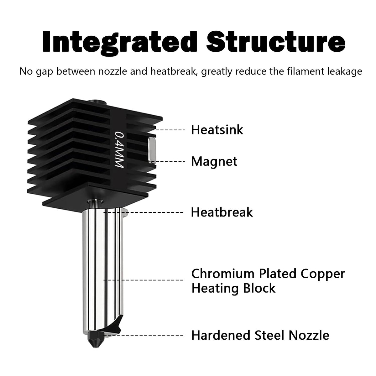Q: Can the HysiPrui A1 Hotend Kit support high-speed printing?A: Yes, the HysiPrui A1 Hotend Kit is designed to support high-speed printing. Its all-metal throat design ensures even heating, allowing filament to flow smoothly, which minimizes the risk of clogging and leakage.