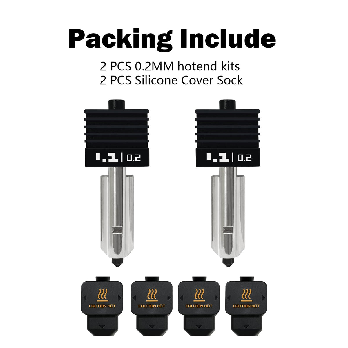 Hzdadeve 2 Pack H2D Combo Hotend Print 0.2Mm Head Hot End Kit Extruder Upgrade High-Temperature Hardened Steel Nozzle With 2Pcs Silicone Cover Sock For Bambu Lab H2D Combo/Am2 Pro/Ams Ht 3D Printer Specification: Material: Hardened Steel Nozzle Design: 0.2Mm Hardened Nozzle For 1.75 Mm Filament Filament Material: 1.75Mm With Pla/Abs/Petg/Tpu/Wood Simple Installation: Remove The Old Hotend Kit And Replace The New One To Start. Compatible 3D Printer: For Bambu Lab H2D Combo/A1/A1 Mini 3D Printer Package Include: 2 X Hotend Kit For H2D Combo 2 X Silicone Sock The Interior Of The Nozzle Is Smooth With Burr-Free, Which Not Only Reduces Air Resistance And Prevents The Filament From Jamming On The Rounded Bevel, But Also Ensures A Long Service Life And Makes The Filament Smoother After-Sale Service: If There Are Any Questions, Just Contact Us Freely, And A Satisfactory Solution Will Be Provided Within 24 Hours