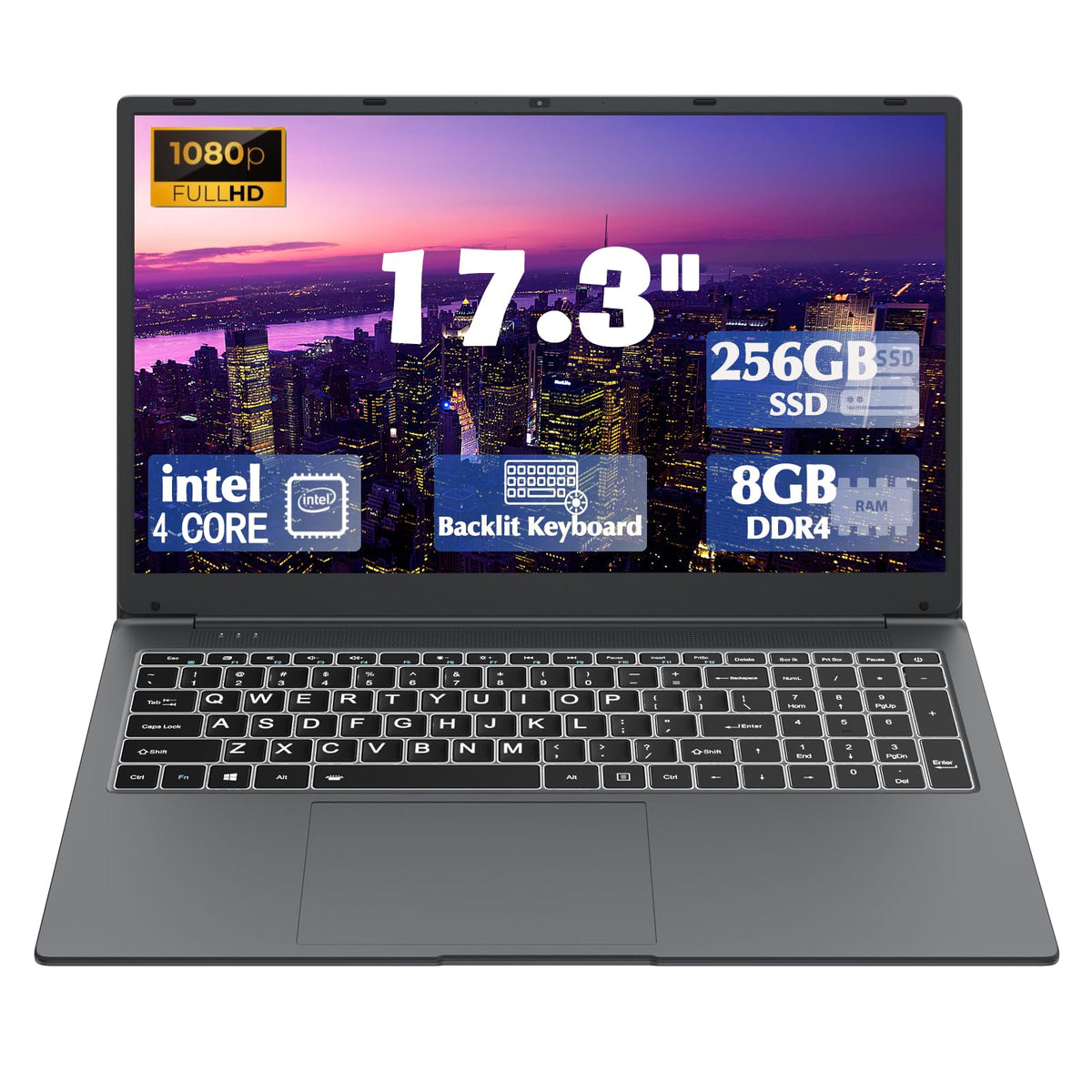 Ijkkji Laptop, 17 Inch 8Gb Ram 512Gb Ssd Laptop With Intel Celeron Quad Core N5095(Up To 2.9Ghz), Ips Fhd Display, Webcam, Dual