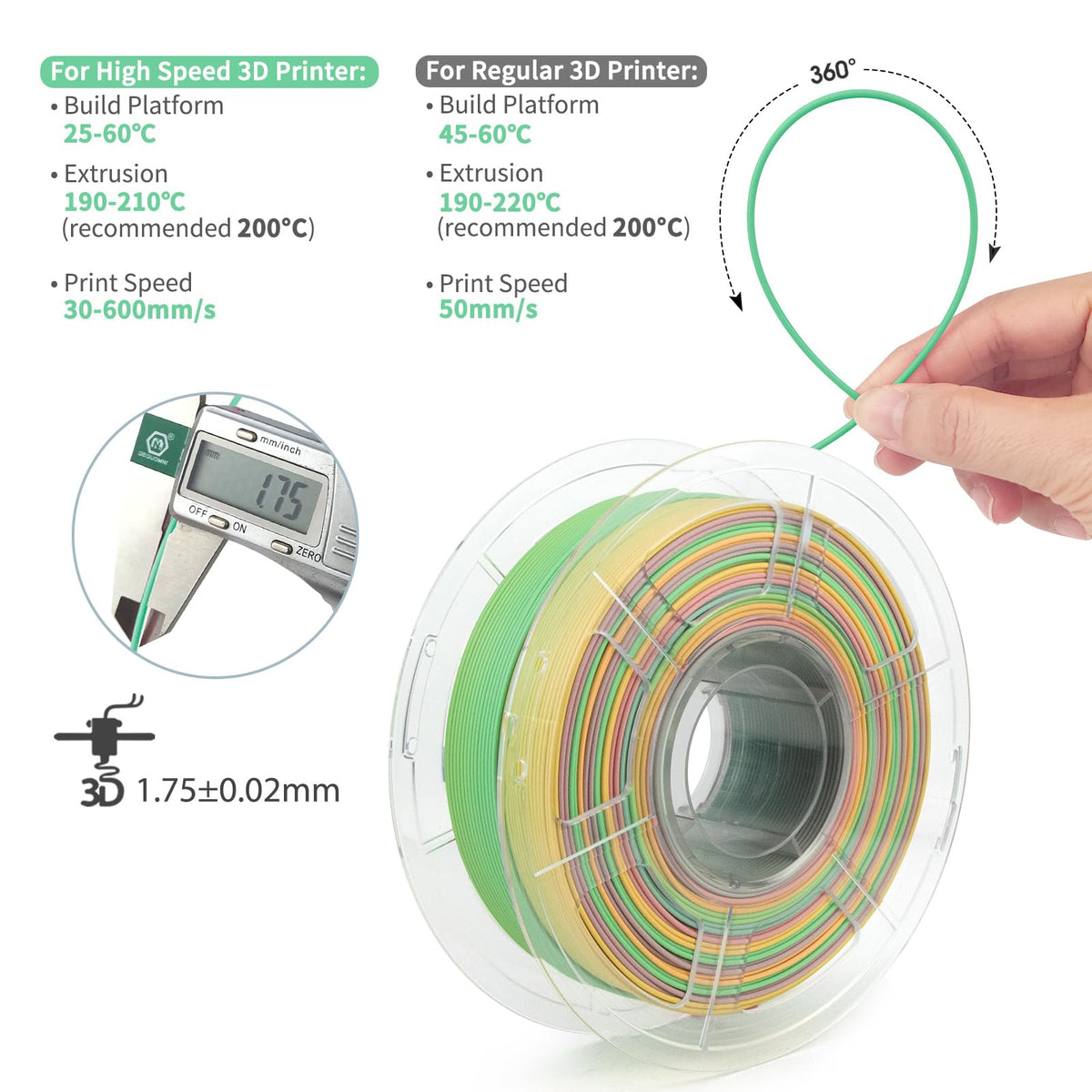 Isanmate High Speed Pla 3D Printer Filament, Matte Rainbow Pla Filament 1.75Mm Designed For High Speed 30-600Mm/S, Fast Printing