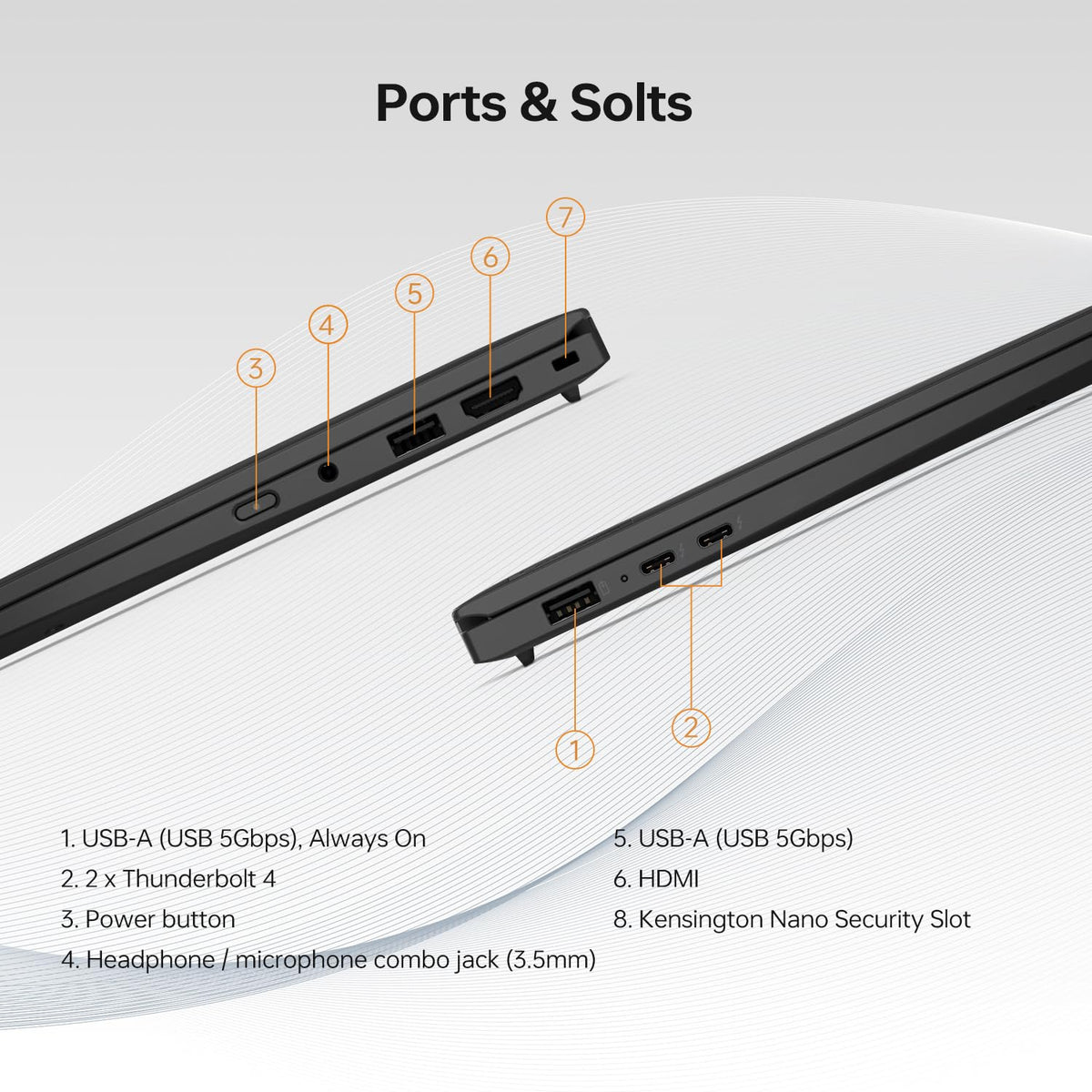 Key Features And Benefits: Cpu: Intel Core Ultra 7 155U Processor (12 Cores, 14 Threads, 12Mb L3 Cache, Clock Speed: 1.2 Ghz, Turbo Speed: 4.8 Ghz) Memory: 32Gb Onboard Ram Only Hard Drive: Up To 2Tb Pcie Solid State Drive Operating System: Windows 11 Pro Graphics: Intel Integrated Graphics Display: 14 Fhd+ (1920 * 1200) Display, 60Hz Ports: 2 X Usb-A (Usb 5Gbps) 2 X Thunderbolt 4 1 X Hdmi 1 X Power Button 1 X Headphone / Microphone Combo Jack (3.5Mm) 1 X Kensington Nano Security Slot Optical Drive: None Media Drive: None Keyboard And Mouse: Backlit Keyboard (Fn+Space, English (Us)) Wireless Connectivity: Wi-Fi & Bluetooth Dimensions: 12.31 X 8.45 X 0.59 Inches Weight: 2.37 Lbs Color: Black