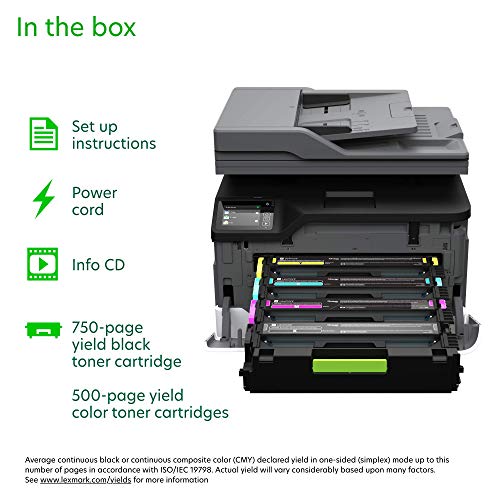 The Lexmark Mc3326Adwe Offers A Full Range Of Multifunction Features For Small Workgroups: Printing, Automatic Scanning, Copying And Faxing. Color Output At Up To 26 Pages Per Minute Means Faster Results And Easy-To-Replace High-Yield Replacement Toner Cartridges Keep The Work Moving. Theres Connectivity Via Gigabit Ethernet, Usb And Wi-Fi, Plus Standard Two-Sided Printing To Save Paper. A 2. 8-Inch (7. 2 Cm) E-Task Touch Screen Features Embedded Workflow Capabilities, Including Scan To Network, Scan To Email And Lexmarks Own Cloud Connector. Lexmark Full-Spectrum Security Is Standard. Full-Spectrum Security - Lexmarks Comprehensive Approach To Product Security Is A Design And Engineering Mandate Across Our Entire Product Portfolio. Our Security Features Help Keep Your Information Safe-In The Document, On The Device, Over The Network And At All Points In Between. Hands-Off Durability - With Its Steel Frame And Long-Life Imaging Components, The Mc3326Adwe Is Built To Last. Compact Form Factor - Measuring Just 13. 6 Inches High X 16. 2 Inches Wide X 15. 5 Inches Deep (344. 4 Mm High X 411. 2 Mm Wide X 394. 1 Mm Deep), The Mc3326Adwe Fits Almost Anywhere. Its Compact Size And Light Weight Make It Easy To Ship, Easy To Set Up And Easy To Move. Save Paper, Save Energy - Automatic Two-Sided Printing Is Standard, Along With A Built-In Energy-Saving Mode That Goes From Sleep To Print To Sleep With Nothing To Set. Plus, Its Rated Epeat Silver And Is Energy Star Certified.