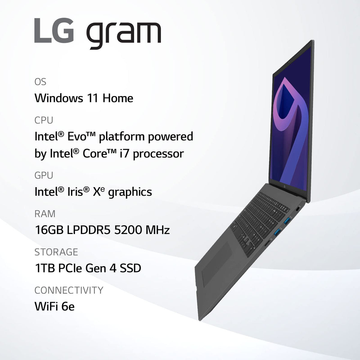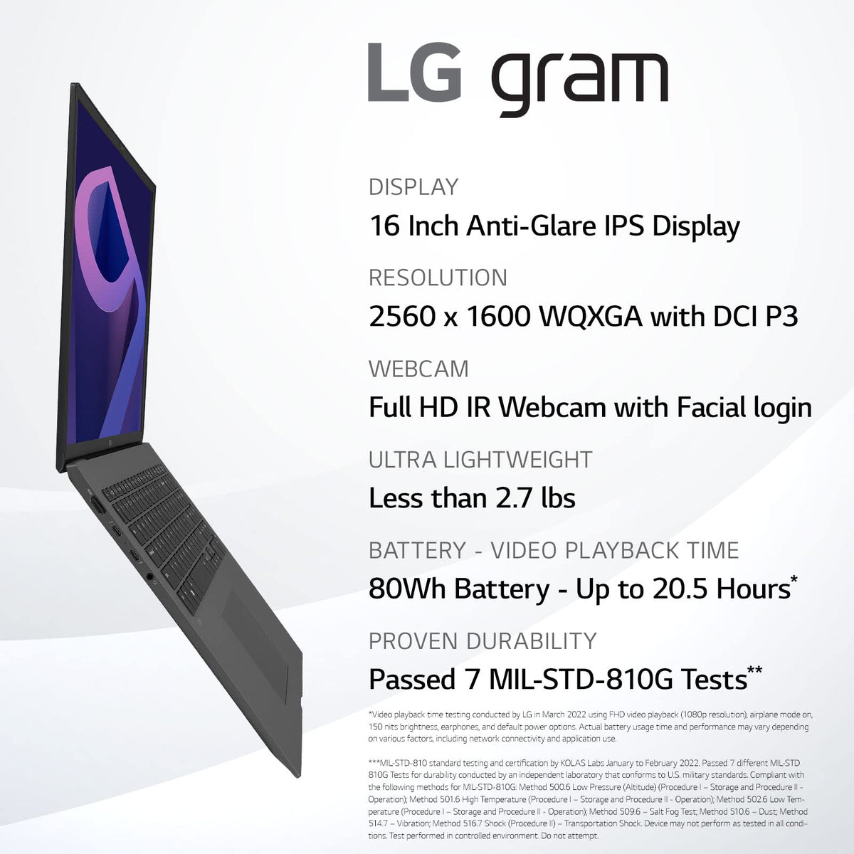 Lg Gram (2022) 16Z90Q Ultra Lightweight Laptop, 16'' (2560 X 1600) Ips Display, Intel Evo 12Th Gen I7 1260P Processor, 16Gb Lpdd