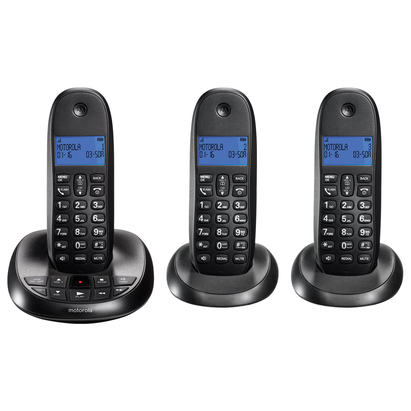 The Motorola C1013Lx Is A Digital Cordless Home Phone With Answering Machine And Three Handsets That Is Wireless Network Friendly, So It Wont Interfere With Your Other Wireless Devices Or Home Networks. The Dect 6.0 Transmission Gives You Secure Calls With Virtually No Interference. Store Up To 50 Names And Numbers In The Built-In Phonebook. The Quick Access Buttons Let You Find Friends And Family Easily And Dial Them Quickly. This Model Also Offers Convenient 20-Call Log Caller Id/Call Waiting, Backlit Lcd And 10 Selectable Ringtones. The C1012Lx Is The Perfect Cost Effective Addition To Every Home.