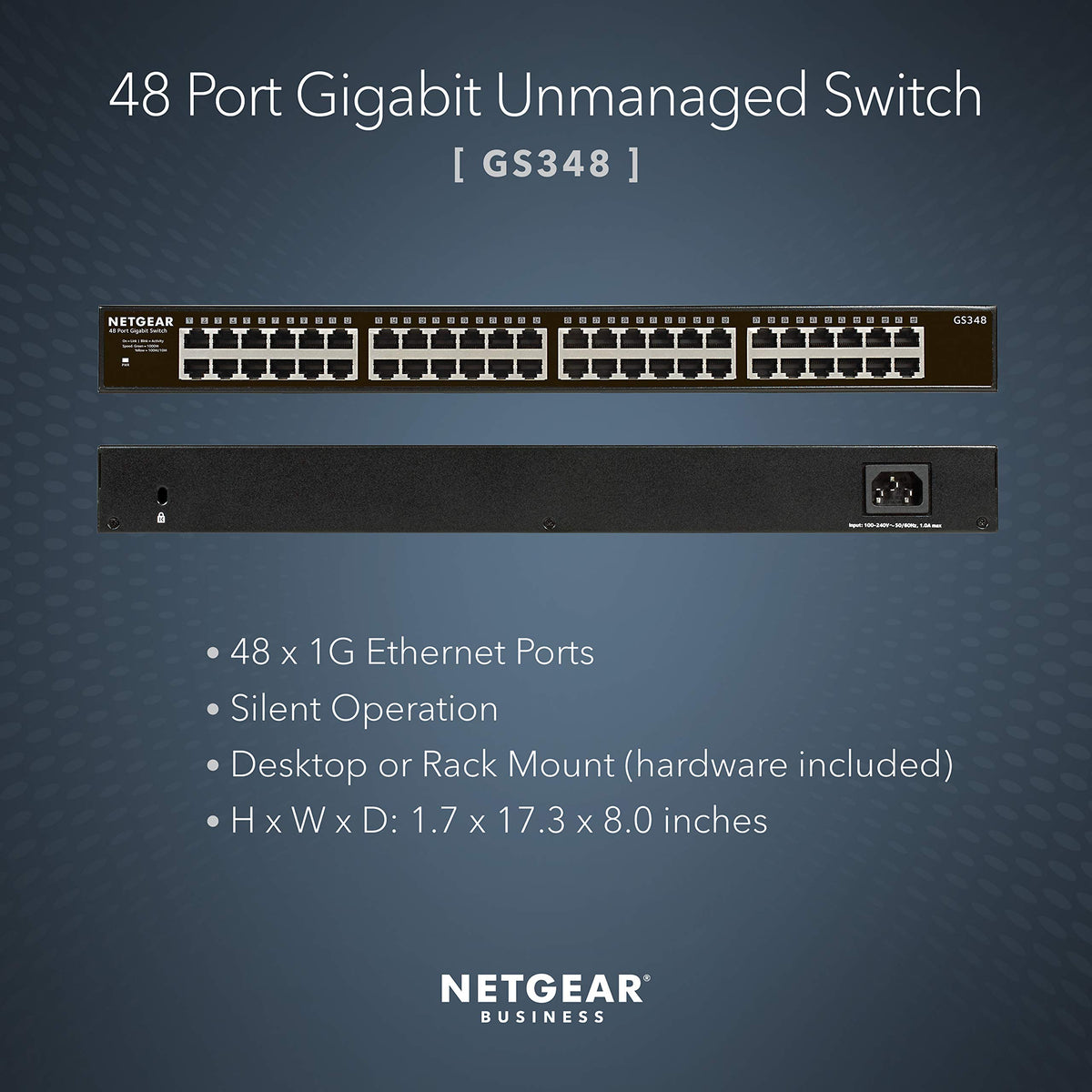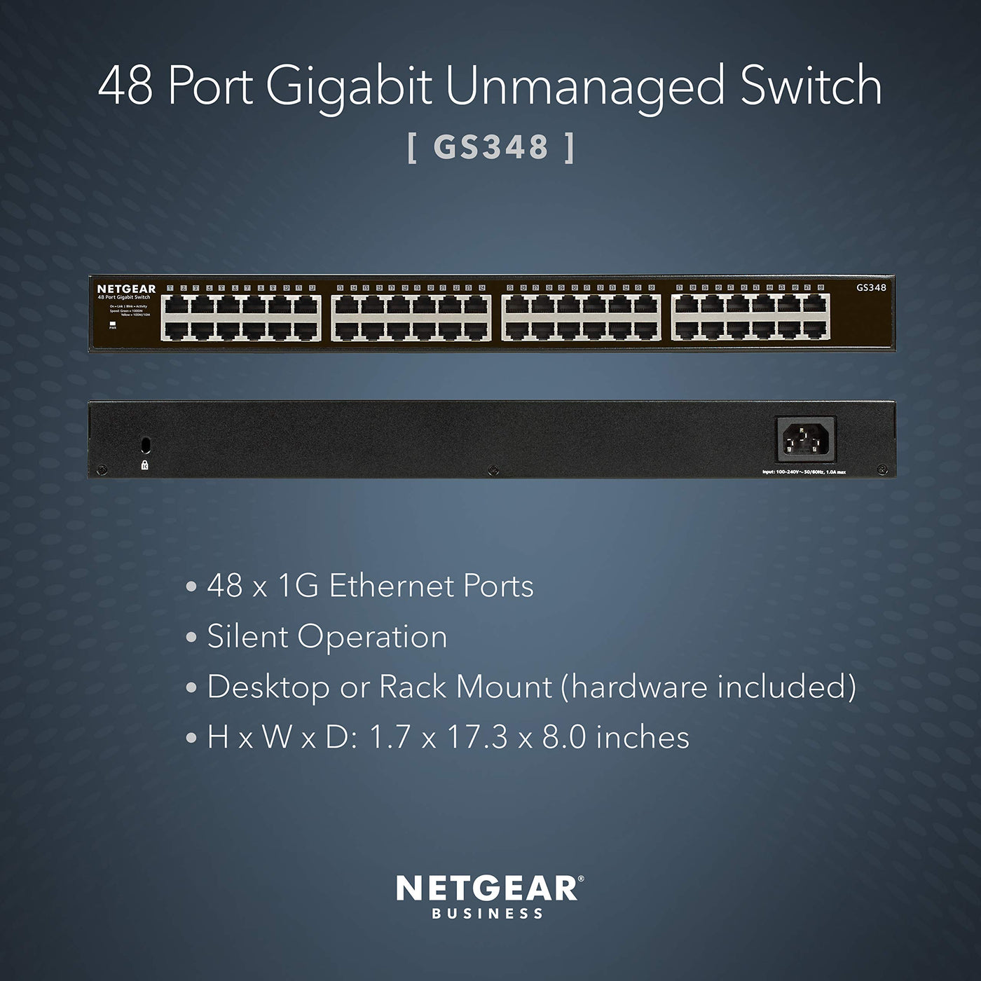 The Netgear Gs348 Unmanaged Switch Is Designed For Desktop Or Rackmount And Features 48-Port Gigabit Ethernet, Fanless Housing For Quiet Operation And More.