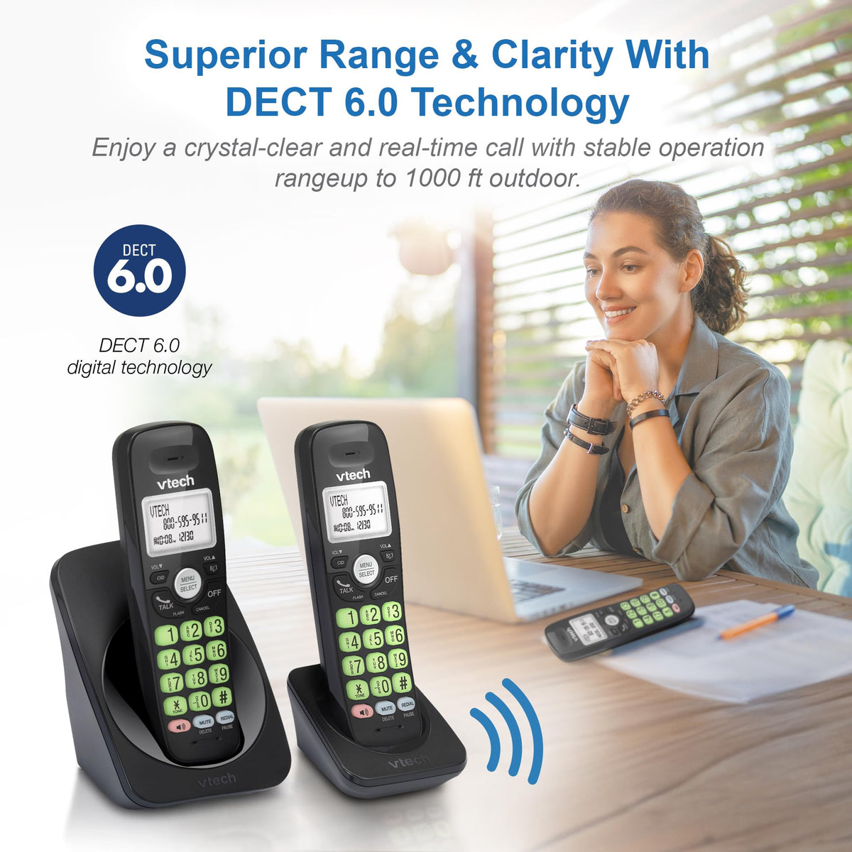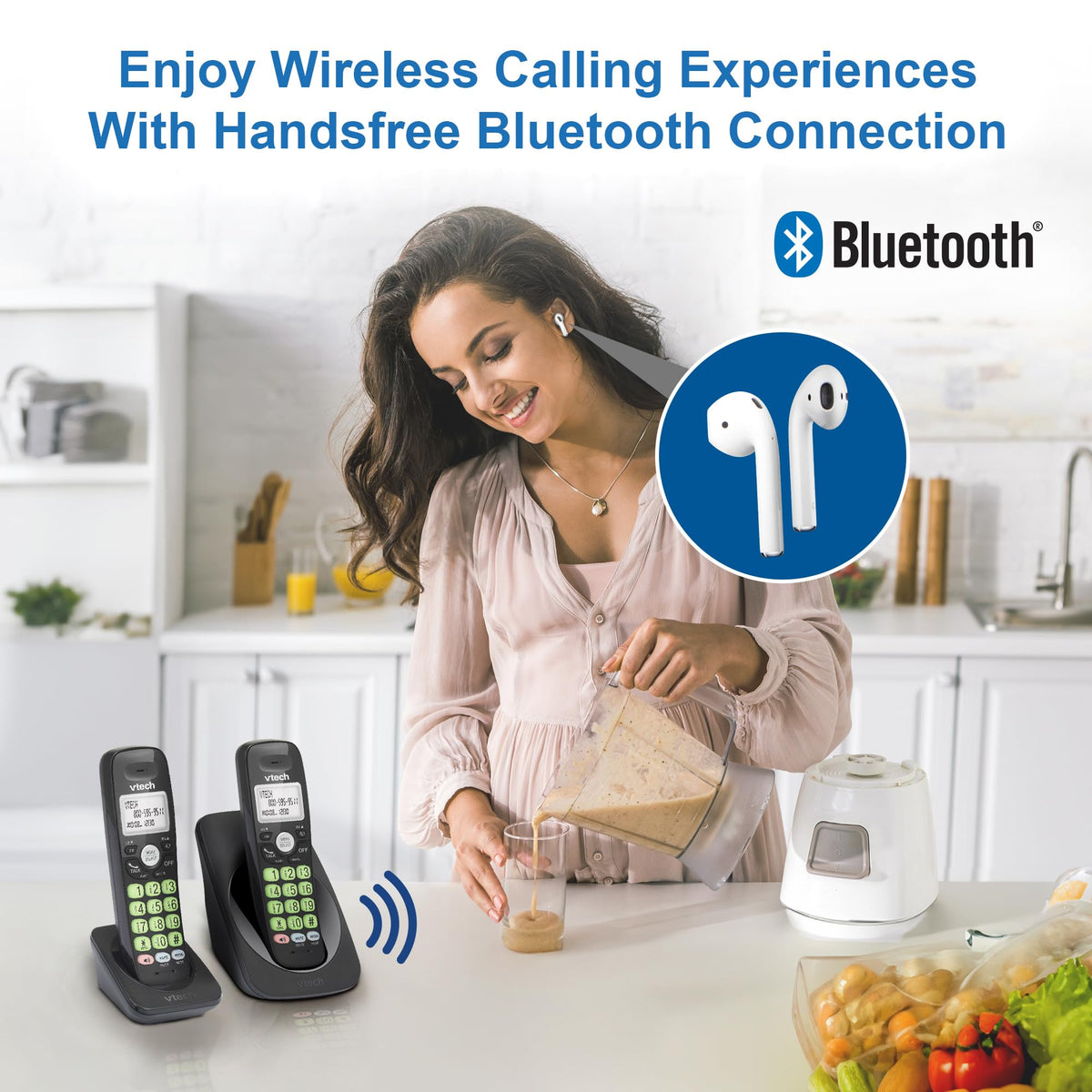[New] Vtech Vg131-21 Dect 6.0 2-Handset Cordless Phone - Bluetooth Connection, Blue-White Display, Big Buttons, Full Duplex Spea