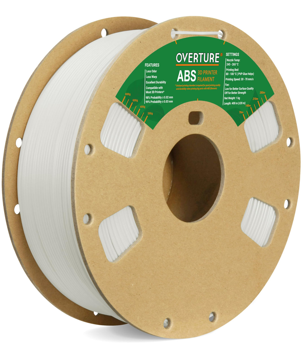 Note: The Recommended Print Setup For Overture Filaments Could Be Slightly Different From Other Filaments Pls Read The Description Below, You May Also Get Some Practical Suggestions Through Qa Top Review &Nbspfrom Others Faqs: Why Cant The Filaments Stick To The Build Bed 1 Check The Temperature Setting Before Printing, Abs Filaments Have Higher Extrusion Temperature 2 Check If The Plate Surface Has Been Used For A Longtime, It Is Recommended To Replace It With Our New One To Ensure An Strong First Layer Adhesion 3 If The First Layer Has Poor Adhesion, It Is Recommended To Re-Level The Print Substrate To Reduce The Distance Between The Nozzle And The Surface Plate 4 If The Effect Is Not Good, It Is Recommended To Try Printing The Draft Before Printing &Nbsp &Nbsp Specification: Recommended Extrusionnozzle Temp:&Nbsp 245 Ac - 265Ac (473 509 ), Heated Bed Temp: &Nbsp80Ac - 100 Ac (176 212) Pvp Stick Helps Printing Speed:3070 Mms (1,8004,200Mm Min) Fan: Low For Better Surface Quality Off For&Nbspbetter Strength Raft&Nbsp Filaments Diameter And Accuracy: 175 Mm +- 003 Filaments Net Weight: 1 Kg (22 Lbs) &Nbsp Packaging Included: 1 A Spool Of Abs Filaments
