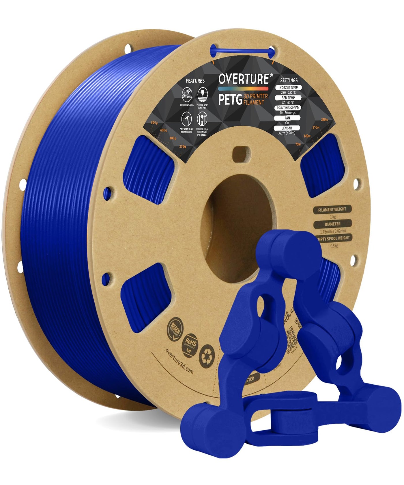 Overture Petg Filament 1.75Mm, 3D Printer Filament, 1Kg Spool (2.2Lbs), Dimensional Accuracy 99% Probability +/ 0.03Mm, Fit Mos