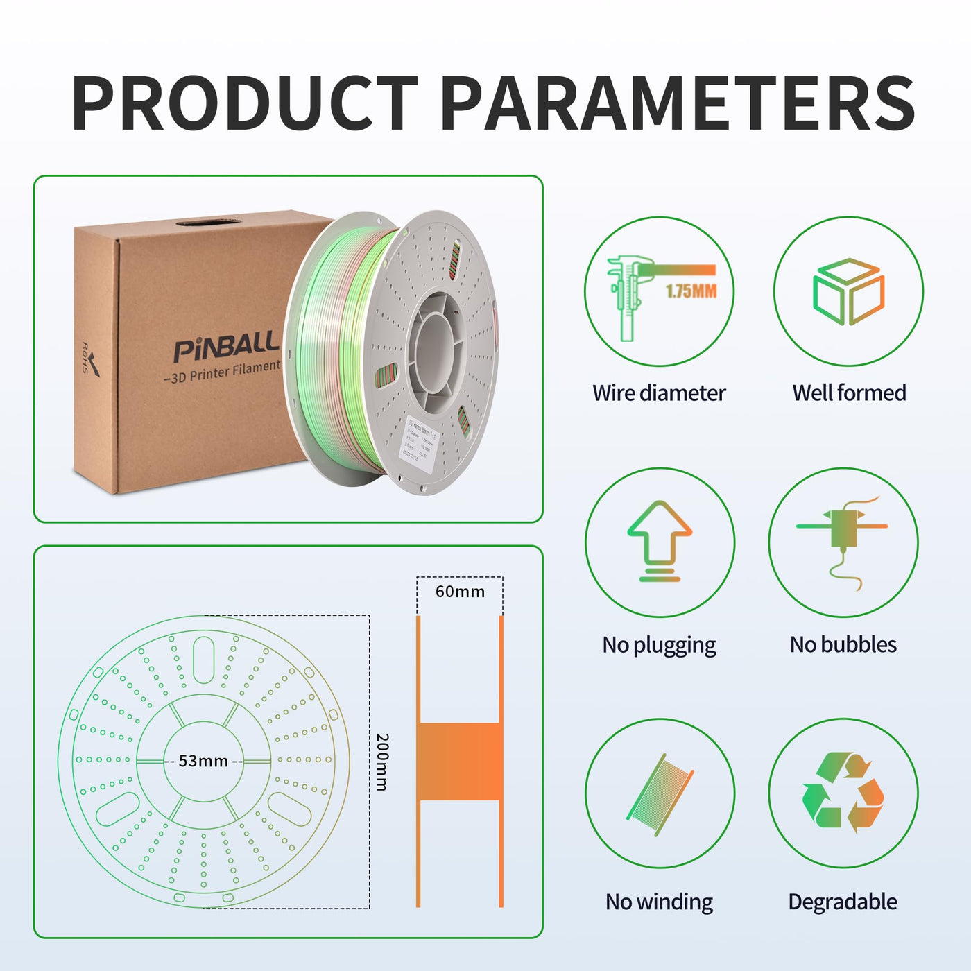 Pinball Silk Rainbow Pla Filament 1.75Mm, 3D Printer Multicolor Filament, Color Changing Filament 1Kg (2.2Lbs) 1 Spool, Dimensional Accuracy +/- 0.02 Mm