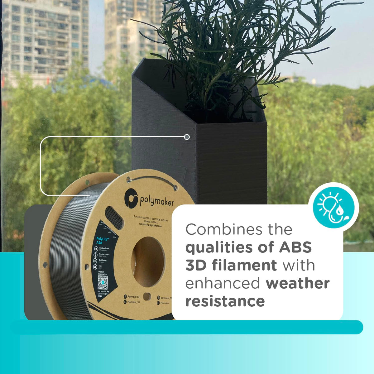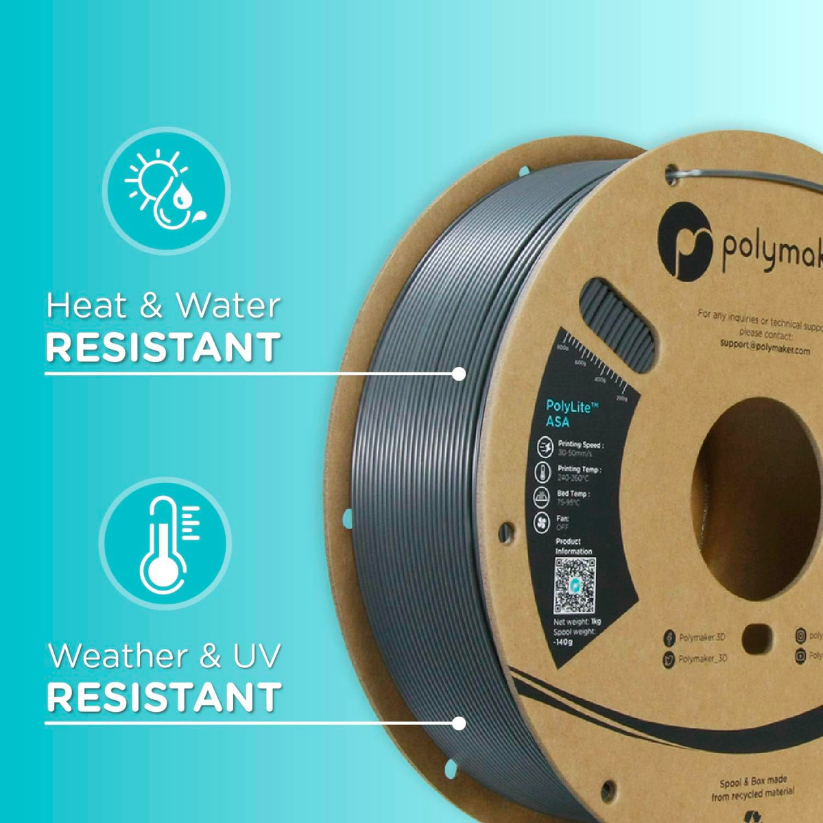 Weather Resistant - Polylite Asa Uv Filament Has All The Properties Of 3D Filament Abs With The Additional Features Of Being Weather Resistant Our Asa Is Uv Resistance And Resistant To Environmental Stress Cracking Polylite Asa Can Be Used Outdoor For Outside Application Such As Rc Planes Or Car Accessories High Heat Resistance And Mechanical Properties - Polylite Asa Can Resist Temperatures Up To 100Ac (212Af) And Display High Toughness And Impact Resistance For Functional Application ( Same Properties As 3D Printer Filament Abs ) Atte Finish - Polylite Asa Dark Grey Is A 3D Filament Asa With A Very Special Matte Finish Which Makes The Final Print Look Very Smooth And High Quality (Matter Surface Than Regular 3D Abs Dark Grey Filament ) - Note: Turn Off The Fan For Better Mechanical Properties, Turn It On At 30% For Higher Print Quality Selected Color: Dark Grey Asa Filament 175Mm ( Similar To Dark Grey Abs Filament 175Mm ) Cardboard Spool - Comes In Upgraded 30 Version Packaging With Fully Recycled Cardboard Spool And Box Rinting Settings - Nozzle: 250Ac Bed: 90Ac Speed: 50Mms (Settings Can Be Adjusted Depending On The 3D Printer, You Can Refer To The 3D Printer Abs 175Mm Filament Settings) To Print Large Parts Without Warping Issue, We Recommend Using An Enclosed Printer To Maintain A Warm Enviroment Around The Print Using Buildtak Or Magigoo Can Help With The Bed Adhesion Risk Free & Lifetime Technical Support - We Offer A Full Refund If The Product Is Not Performing As Expected Let Us Help You Get Your Perfect Beautiful Prints And Contact Us Via Amazon Anytime You Need
