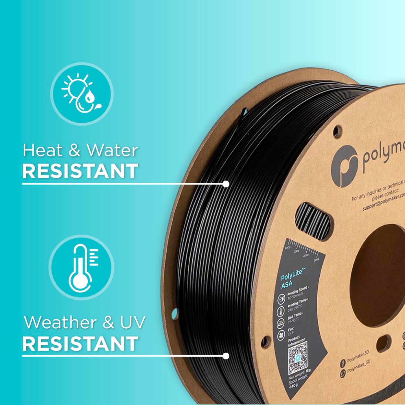 Polymaker Asa Filament 1.75Mm Jet Black Asa, 1Kg Heat Resistant Weather Resistant Asa 1.75 Cardboard Spool Polylite Asa 3D Pri