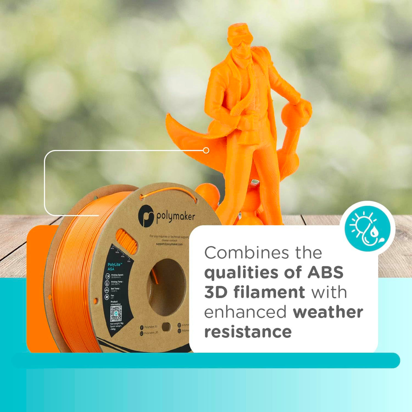 Polymaker Asa Filament 1.75Mm Orange, 1Kg Asa 3D Printer Filament, Heat & Weather Resistant Asa 3D Filament Perfect For Printi