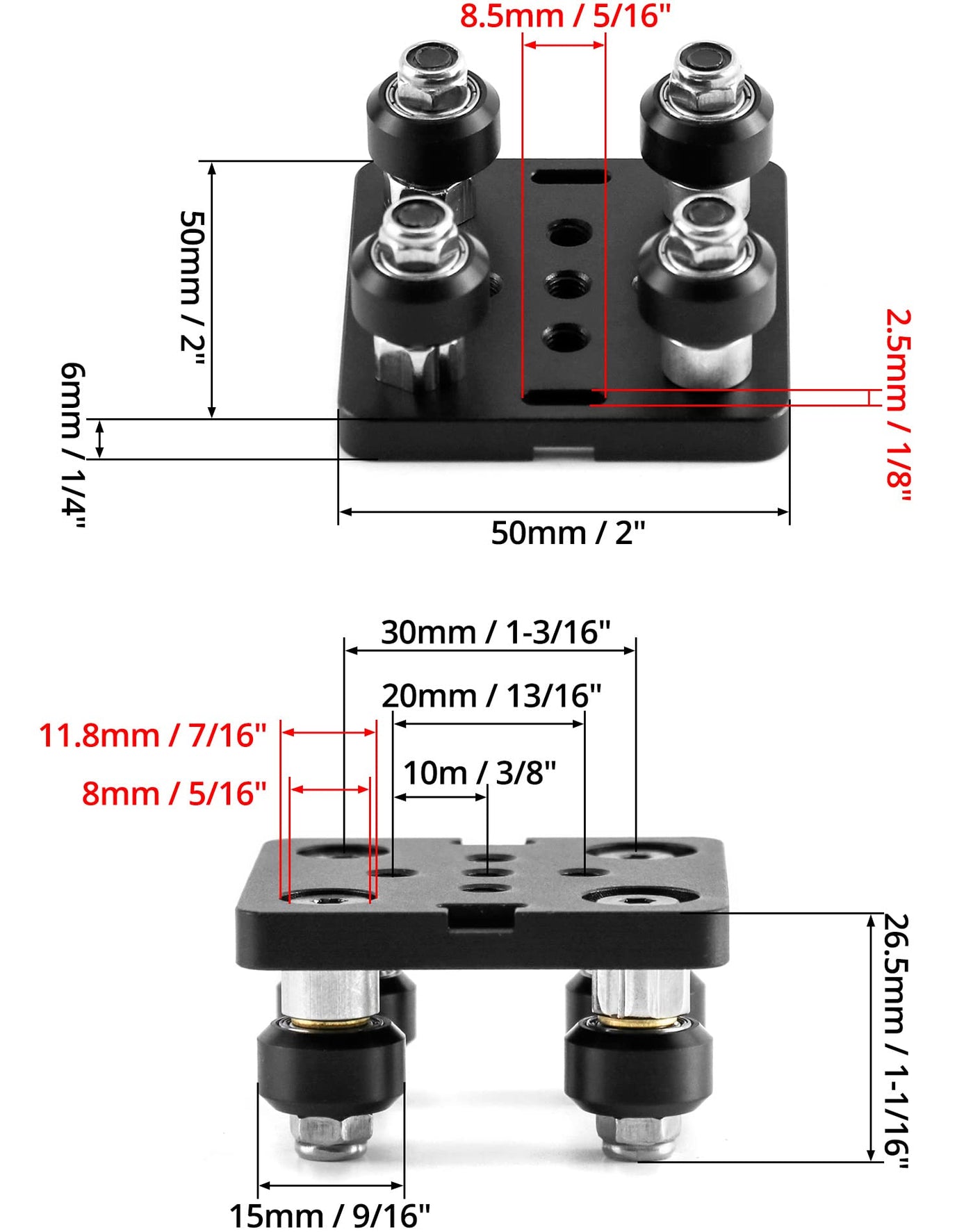 Qwork Small V Wheel Plate, 2 Pack V Slot Gantry Rod Plate With Wheel, For 2020 Aluminum Profile, Cnc And 3D Printer Parts Black