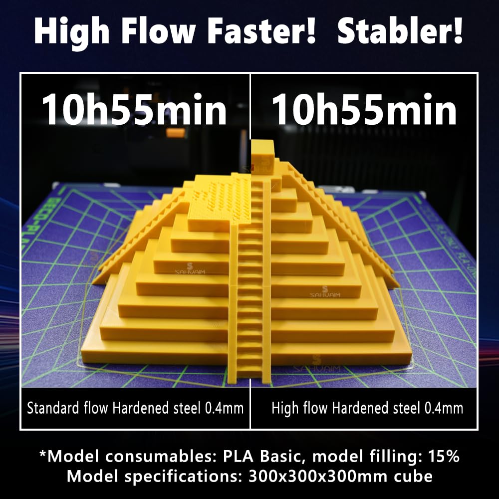 Sahvaim Upgraded High Flow H2D Hot End Kit Includes A High Flow 0.4Mm Hotend, Extra 1Pcs Silicone Cover Sock. Flow Rate Parameter: The Maximum Volumetric Flow Rate Is 65Mm/S; Material: All - Metal Titanium Alloy Throat Tube With An Inner Wall Roughness Of Ra 0.4 And A Wall Thickness Of 0.25Mm; Temperature Resistance: Can Withstand A Temperature Of 350C; Printing Speed Improvement: For Pla Materials, The Printing Speed Can Save Up To 30% Of The Printing Time At Most, And The Maximum Printing Speed Is Increased To 65Mm/S; Compatible Models: Bambu Lab H2D, H2D Laser, A1, A1 Mini.