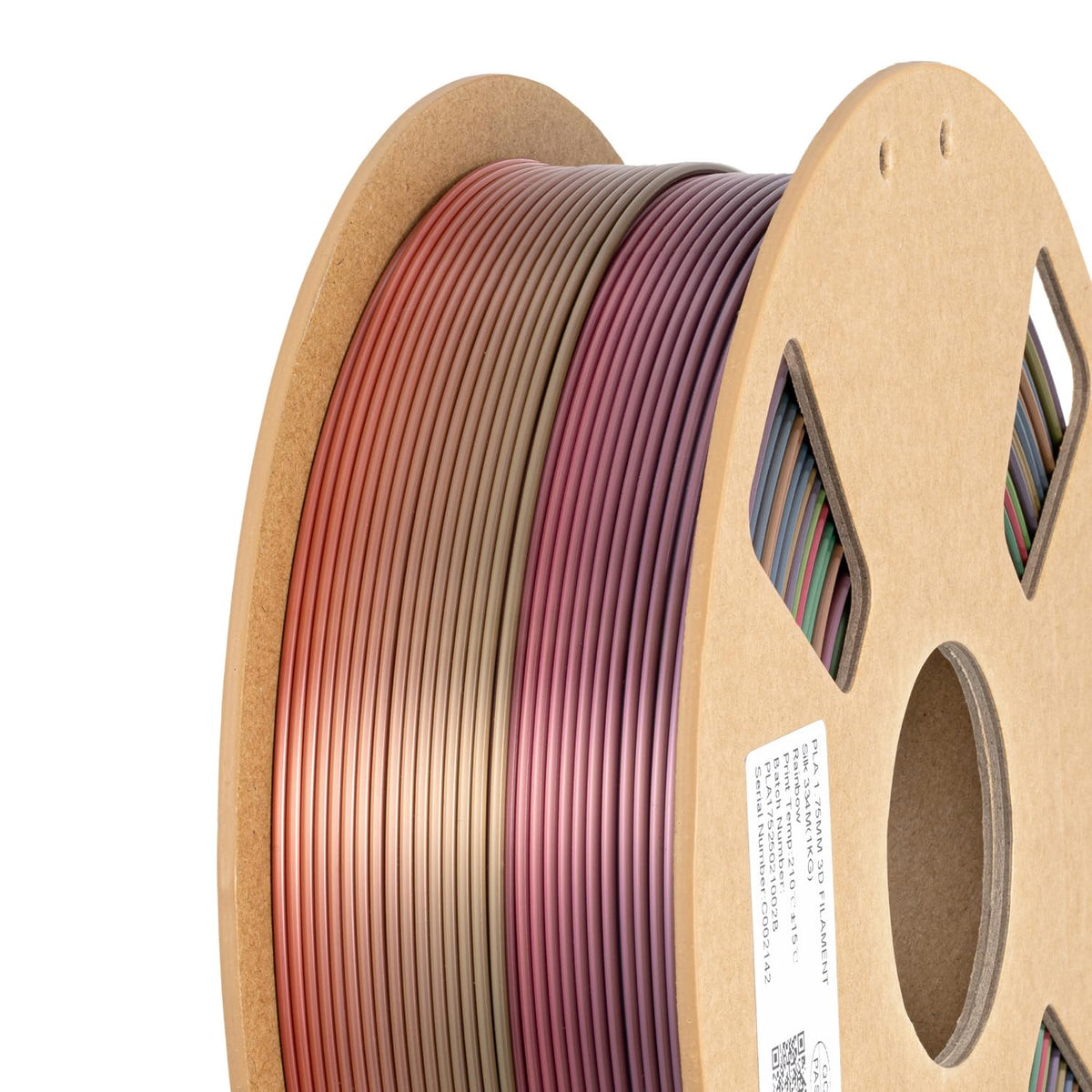 Q: How should I store my Silk Rainbow PLA filament?A: To extend the life of your Silk Rainbow PLA filament, store it in a dry and sealed bag or box. It's also advisable to pass the loose end through the hole at the edge of the filament reel to prevent entanglement.