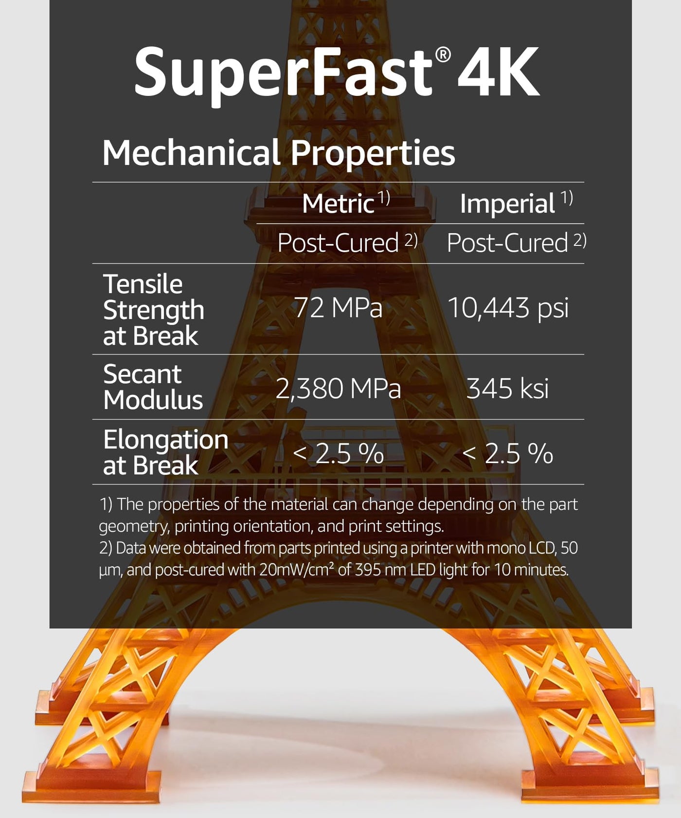 [Fast Printing] Unique Photosensitization Technology Developed By 3Dmaterials Allow For Curing 50Um Layer In 0.6 Sec With Monochrome Lcd And In 3.0 Sec With Regular Lcd. [Save Time And Electricity] Super Fast Printing Save Time And Electricity Bill, Enhance The Productivity Of 3D Printing Farms. [Water Washable] Based On Revolutionary Water Washable Oligomer Technology, The Printed Products, Platform And Resin Tank Can Be Easily Cleaned With Warm Tap Water And Soap. [Compatible To All Lcd Printers] Unique Photosensitization Technology Make New Superfast Compatible For All Kind Of Regular And Mono Lcd 3D Printers. [Low Shrinkage & Toughness] Superfast Is Formulated For 3D Printer Using Lcd Panel With Low Shrinkage Oligomers Synthesized In-House And Monomers Enhancing Toughness Of Prints. [Super Series] Superpp 1.4G (Tough And Durable Like Pp), Superpp 0.9G V-0 (Durable With Flame-Retardant Ul94 V-0), Superpcs (Tough And Durable With 8K Precision), Superflex (Flexible Like Tpu), Superrigid (Ceramic Filled 6.0Gpa Modulus), Superelastic (Flexible Like Silicone), Supersilicone (3D Printable Silicone With Ul94 V-0), Superhdt (Highest Hdt Of 464F(240C)), Supercast (Wax Filled Castable), Superesd V-0 (Electrostatic Discharge Safe With Ul94 V-0) Are Also Available As Engineering Resins From 3Dmaterials.