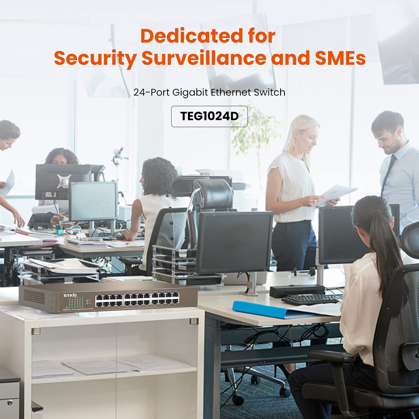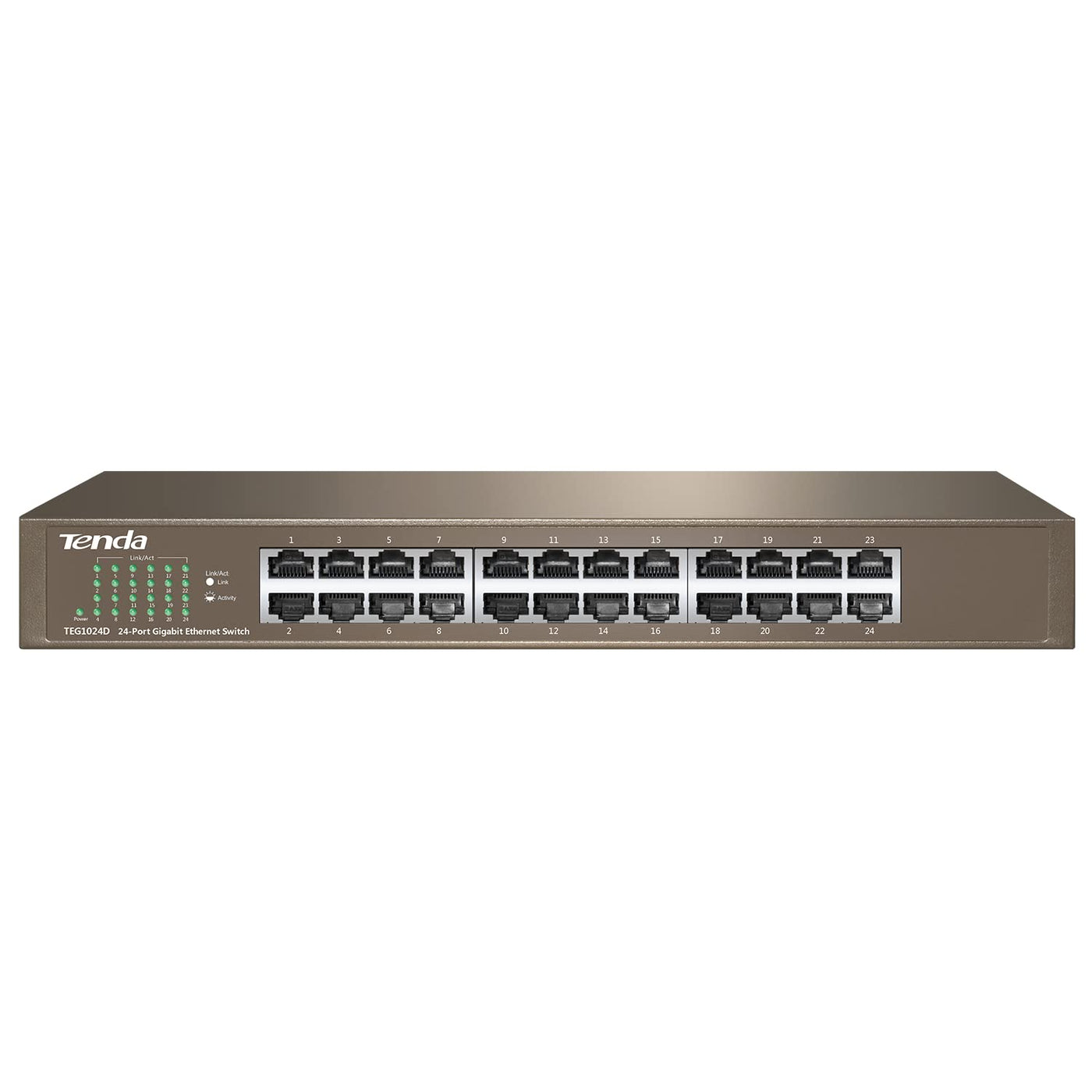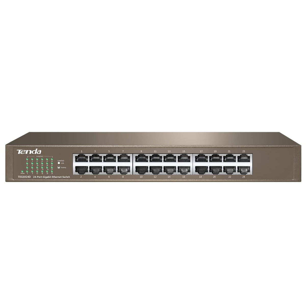 Tenda Teg1024D, 24 Port Gigabit Switch, Unmanaged Desktop Network Hub, Office Ethernet Switch, Fan Less Metal Design, Plug & Pla