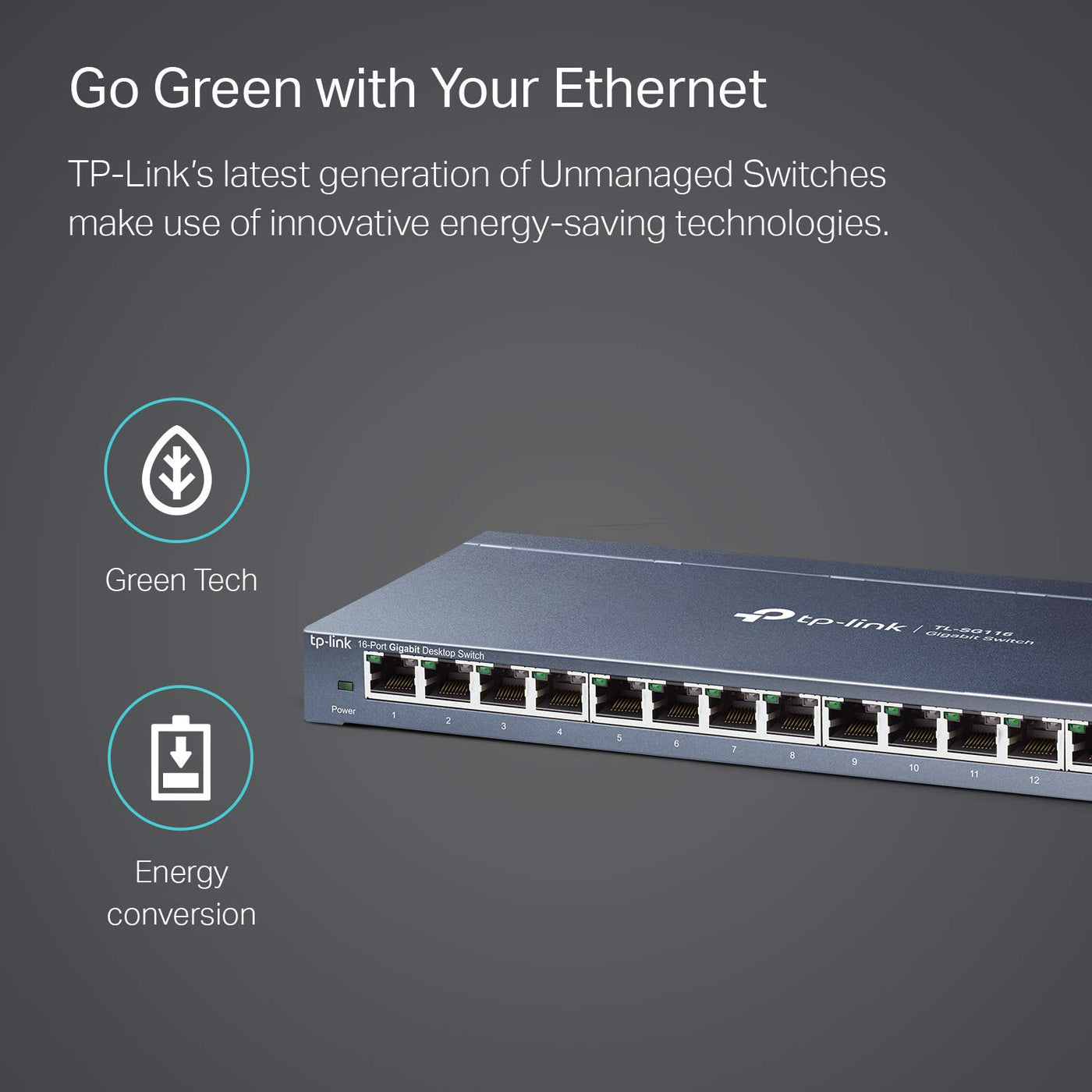 Tp-Link 16 Port Gigabit Ethernet Network Switch, Desktop/ Wall-Mount, Fanless, Sturdy Metal W/ Shielded Ports, Traffic Optimization, Unmanaged (Tl-Sg116) Black