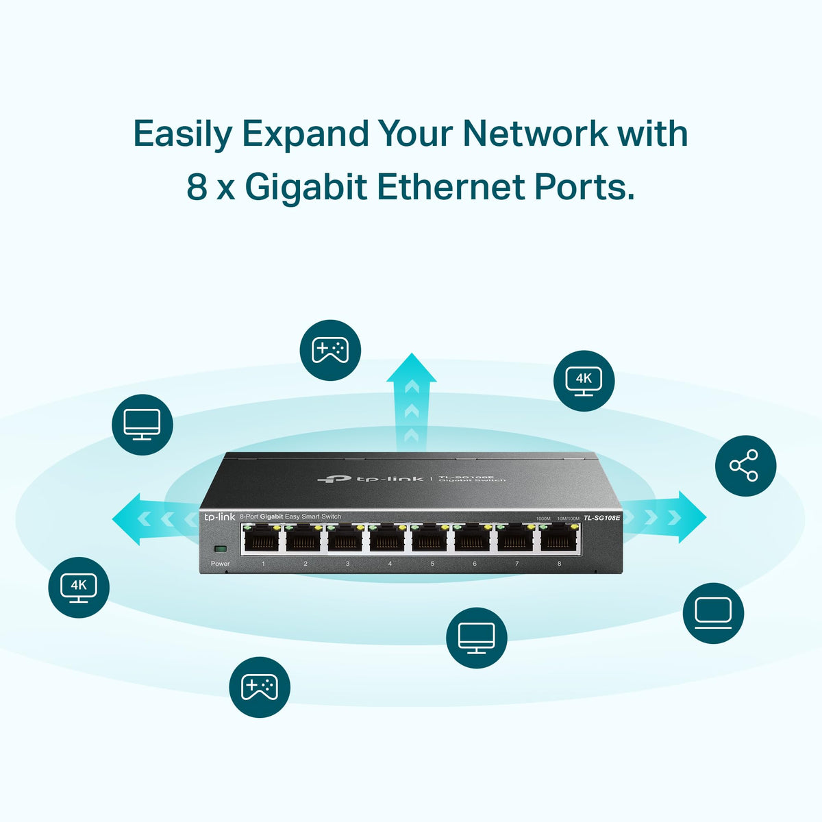 Tp-Link 8 Port Gigabit Switch | Easy Smart Managed | Plug & Play | Desktop/Wall-Mount | Sturdy Metal W/ Shielded Ports | Support