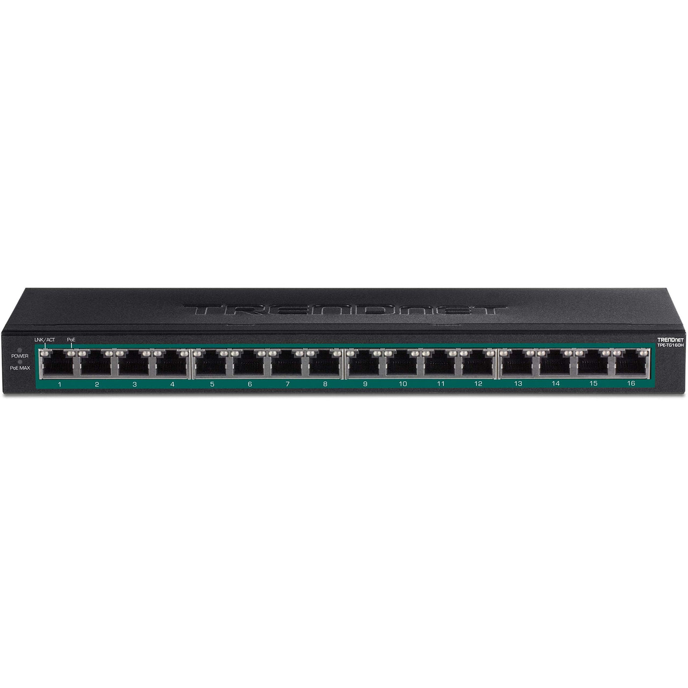 Trendnet 16 Port Gigabit Poe+ Switch Tpe Tg160H 123W Poe Power Budget 32 Gbps Switching Capacity Desktop Switch Ethernet Network