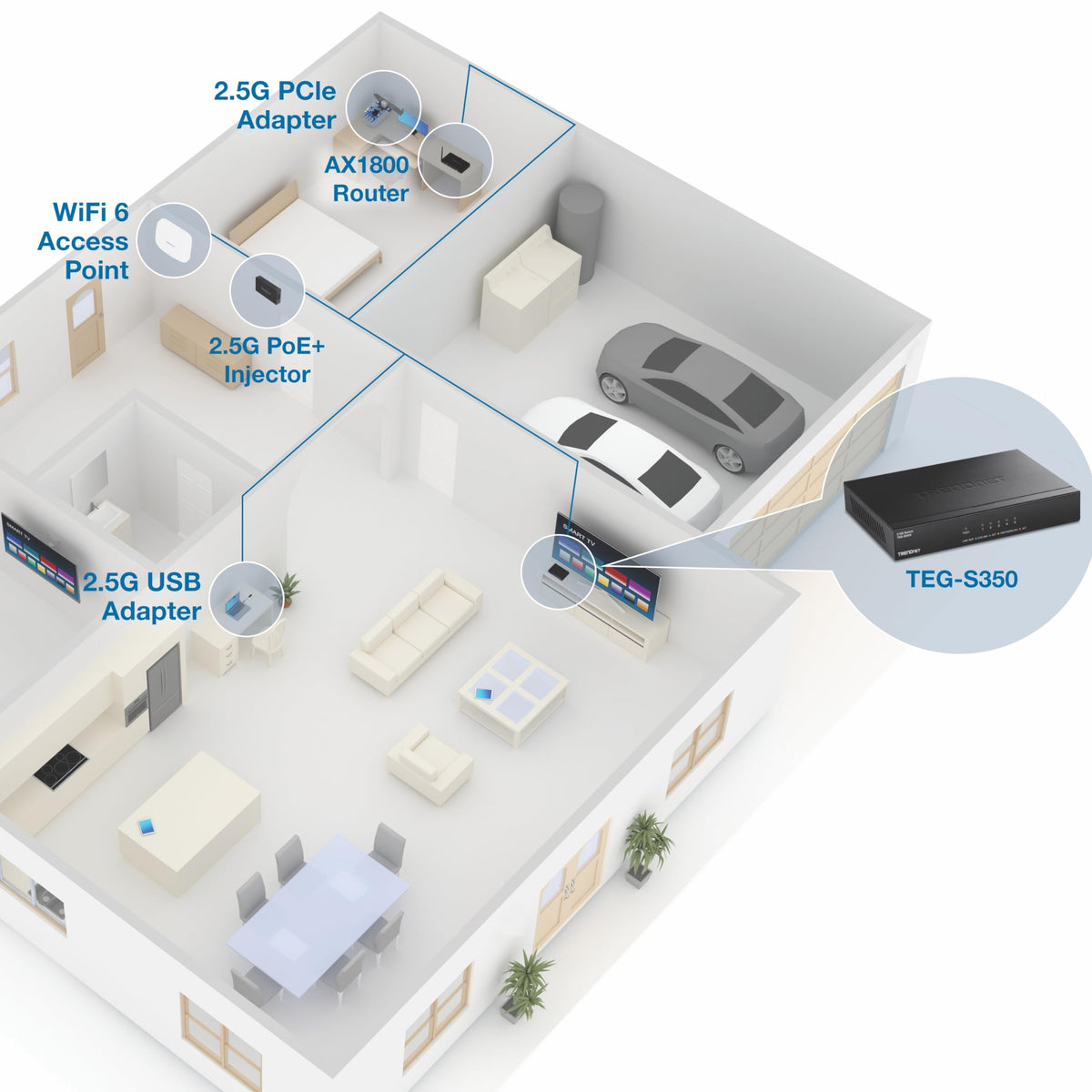 Expand Your Networkas Bandwidth And Reduce Digital Bottlenecks With Trendnetas Unmanaged 25G Switches These 25G Network Switches Come Equipped With 25Gbase-T Rj-45 Ports That Provide Higher Gigabit Speeds Capable Of Up To 25Gbps Over Your Existing Cat5E Or Better Cabling Each High-Speed 25G Switch Features A Durable Metal Enclosure And Can Be Mounted To The Wall For Setup Flexibility The Fanless Design Lowers Energy Consumption And Eliminates Distracting Operating Noise Trendnetas Reliable 25G Switches Are Cost-Effective Solutions To Increase Your Networkas Throughput