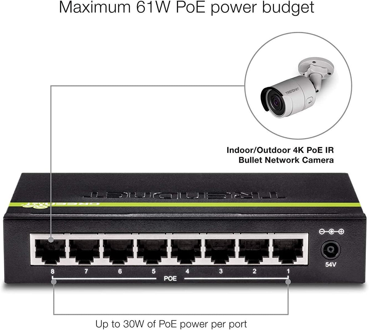 Trendnet 8-Port Greennet Gigabit Poe+ Switch, Supports Poe And Poe+ Devices, 61W Poe Budget, 16Gbps Switching Capacity, Data & P