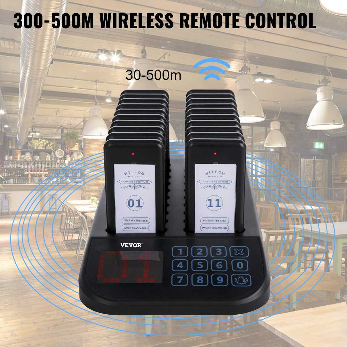 Vevor F103 Restaurant Pager System 20 Pagers, Max 98 Beepers Wireless Calling System, Touch Keyboard With Vibration, Flashing An