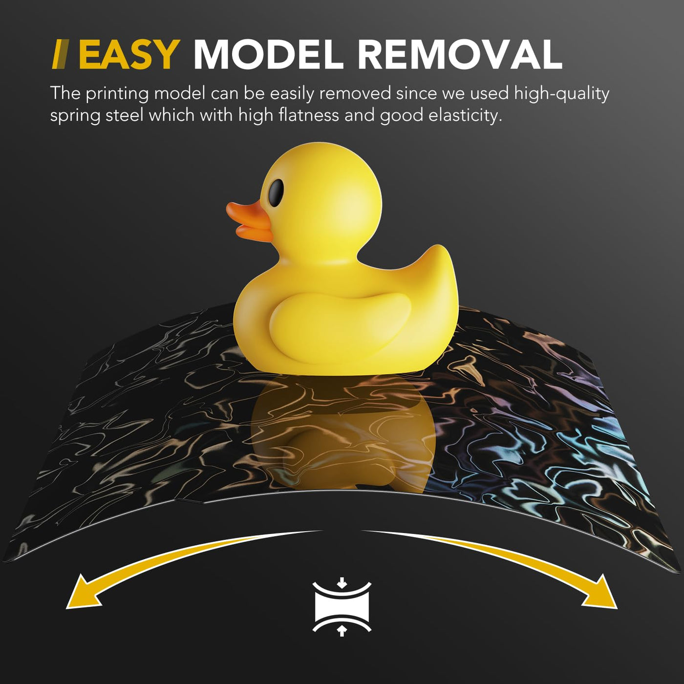Q: How do I remove my 3D prints from the Vokelater build plate?A: Once the printing bed cools down, models can be easily removed from the flexible PEY plate. If adhesion is strong, gently bending the build plate can help detach the model without using tools that might cause damage.