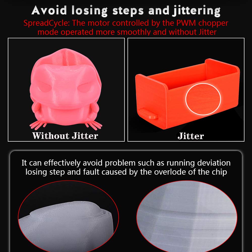 1.Parameter Description: 256 Microsteps Per Full Step. Interpolation From Lower Input Resolutions. Stealthchop2 - For Quiet Positioning. Spreadcycle - For High Speed And High Dynamics. Low Rdson Ls 280M? & Hs 290M? (Typ. At 25C). Voltage Range 12V/24Vdc. Single Wire Uart For Advanced Configuration Options. Integrated Pulse Generator For Standalone Motion. 2.Potentiometer Adjustment Description: Rotate The Potentiometer Clockwise - Reduce Vref To Reduce Drive Current; Turn The Potentiometer Counterclockwise - Increase Vref To Increase The Drive Current. 3.Note: 1. Hardware Selection When Using The Uart Working Mode, Carefully Use The Soldering Iron To Prevent Burns, Handle After Observing, Carefully Observe Whether The Module Has Residual Tin Slag. It Must Be Cleaned To Prevent It.Cause The Module To Be Short-Circuited And Burned; 2. Pay Attention To The Line Sequence And Io Port When Wiring. Connecting The Wrong Line Will Directly Cause The Driver To Not Work. Corresponding To The Above Diagram Carefully Connected; 3. When Plugging The Driver Into The Motherboard, Pay Attention To See The Driving Direction, Never Insert It, And Prevent The Drive.The Fire Was Burned; 4. Must Do The Heat Dissipation Work (Heat Sink + Cooling Fan) Before Driving Work, Prevent Driving Not Working Properly; 4.Tips: If You Encounter Any Problems During Use, Please Contact Us, We Will Be Willing To Help You;At The Same Time,If You Have Any Good Comments Or Suggestions About Our Products, Welcome To Give Us Feedback. We Will Also Carefully Consider Your Comments Or Suggestions, Thank You For Choosing Bigtreetech Products.