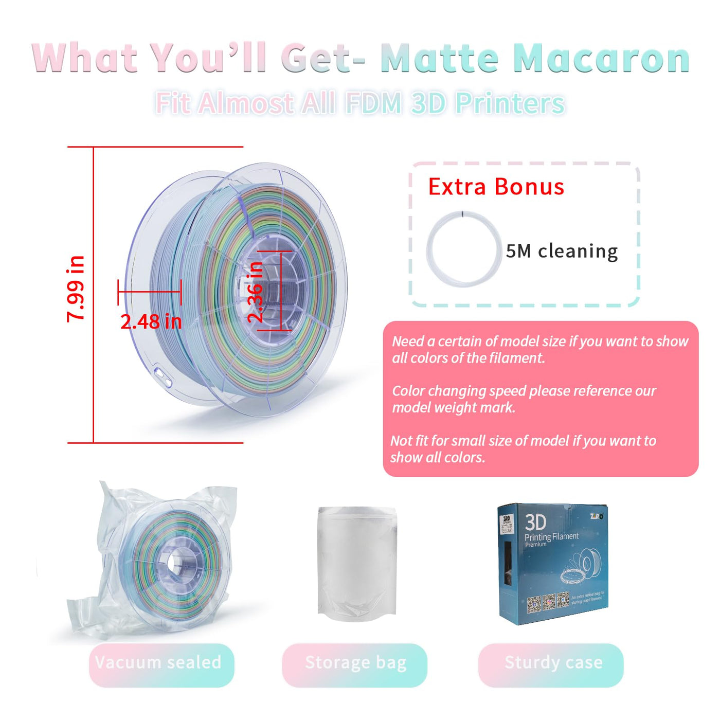 Ziro 3D Printer Filament,Matte Pla Filament 1.75Mm,Multicolor Rainbow Pla Filament,1Kg/2.2Lb,Macaron