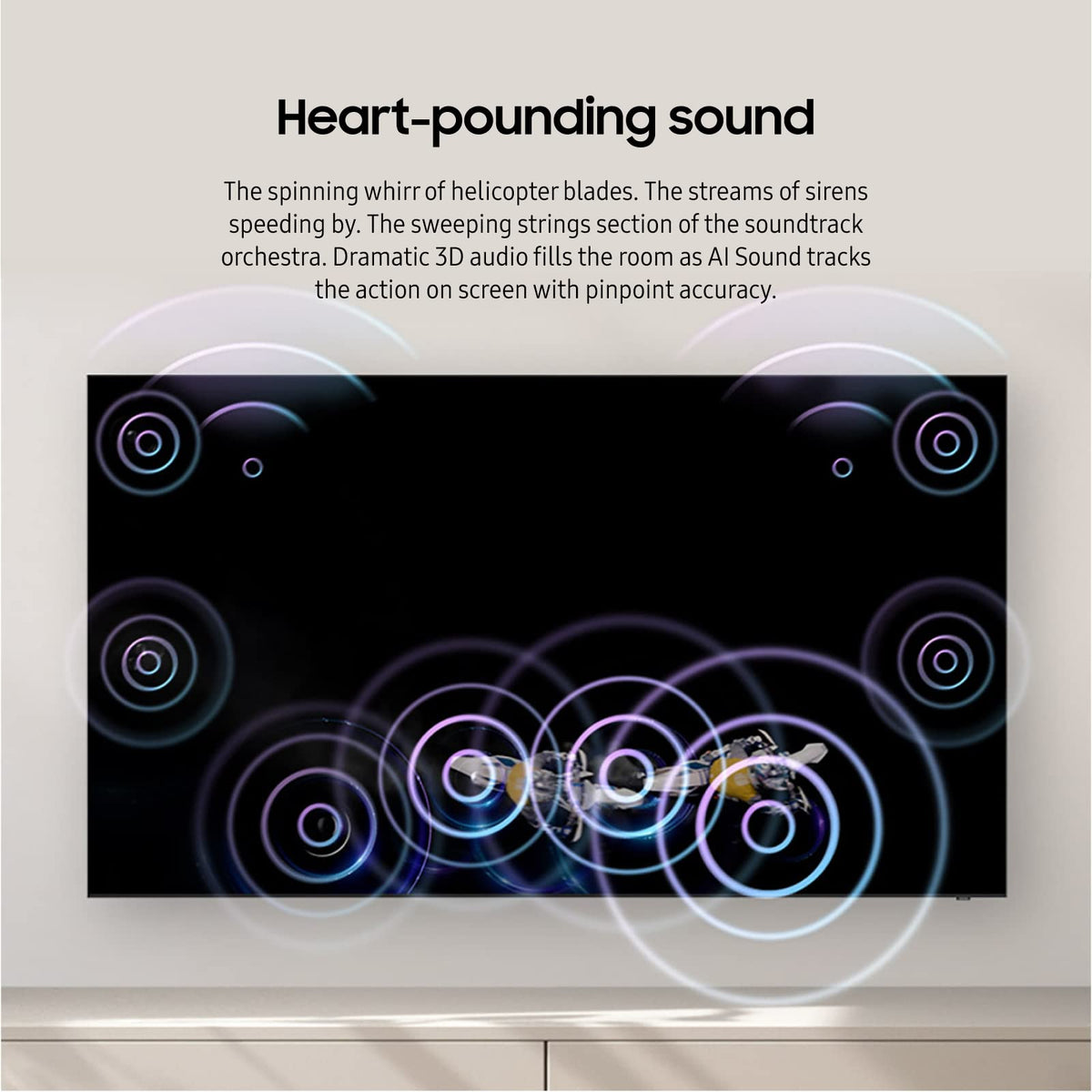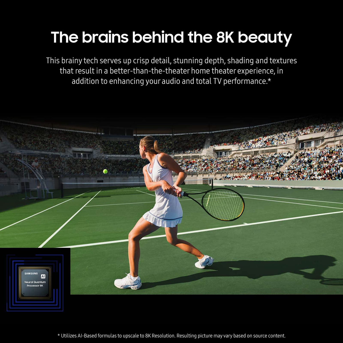 Experience Our Greatest Of All Time. This Trailblazer Of Samsung Tvs Doesnt Just Boast Amazing Tech Specs. Its Got Style, Too-With A Virtually Bezel-Free Design Thats As Wow-Inspiring And Guest-Impressing As The Picture Itself. Treat Your Eyes To 33 Million Pixels Of Brilliance. Samsungs Neo Qled 8K Delivers Unparalleled Picture Quality And Mind-Blowing Sound. The Powerful Processor Transforms Your Favorite Content Into Stunning 8K*, And The Smallest Details Come To Life With Our Iconic Quantum Mini Led Technology Complemented By Lifelike Sound With Dolby Atmos, Object Tracking Sound Pro And Q-Symphony 3.0.** Plus, With Anti-Reflection Technology And An Ultra Viewing Angle, Ambient Brightness Wont Distract From Whats On-Screen. *Utilizes Ai-Based Formulas To Upscale To 8K Resolution. Resulting Picture May Vary Based On Source Content. **Q-Symphony 3.0 Is Compatible With Samsung Q-Series And S-Series Soundbars. Soundbars Sold Separately. ***High Speed Internet Connection, Additional Gaming Service Subscriptions, And Compatible Controller Required.
