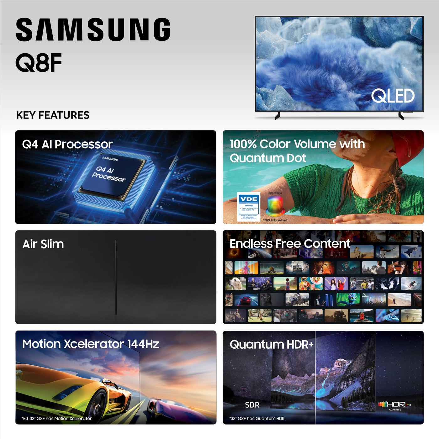 Samsung 85-Inch Class Qled Q8F 4K Uhd Smart Tv (2025 Model) Q4 Ai Processor, 100% Color Volume With Quantum Dot, Airslim Design,