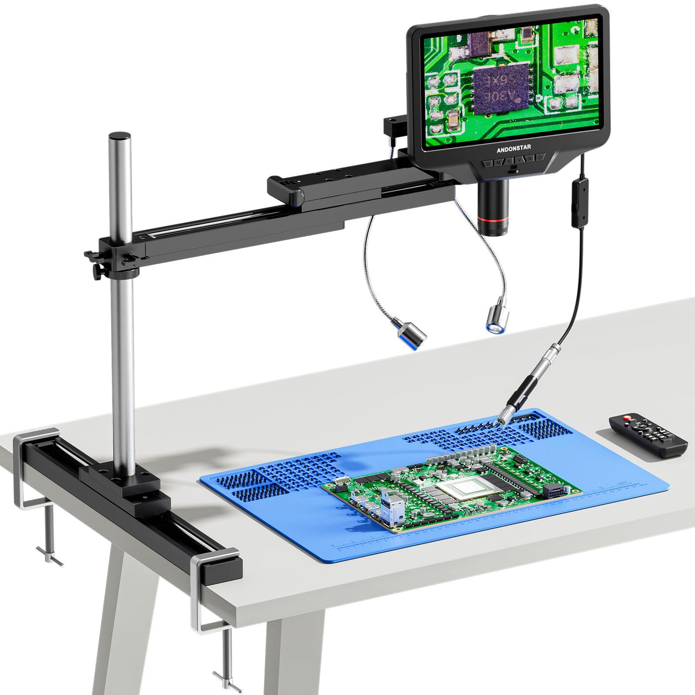 Andonstar AD409 SA 10.1 HDMI Soldering Digital Microscope with Slide Rail Arm, Endoscope, 300X USB Electronic Microscope Camera for Professional PCB Repair, Soldering, Electronics, Windows PC