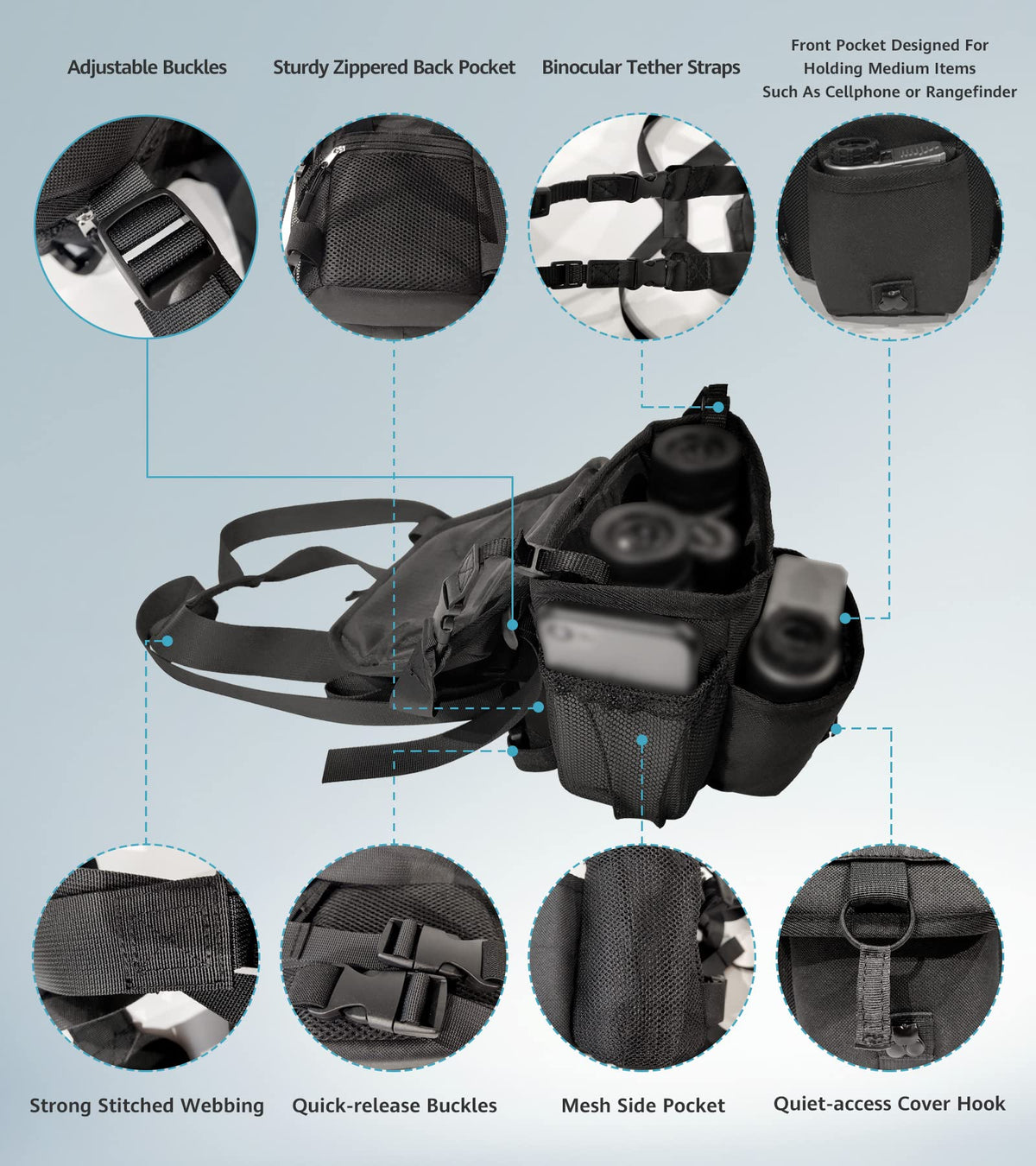 Gaiarena Binocular Harness Chest Pack, Waterproof Bino Harness With Rangefinder Pouch For 20X50 Binoculars Bino Chest Harness Ad