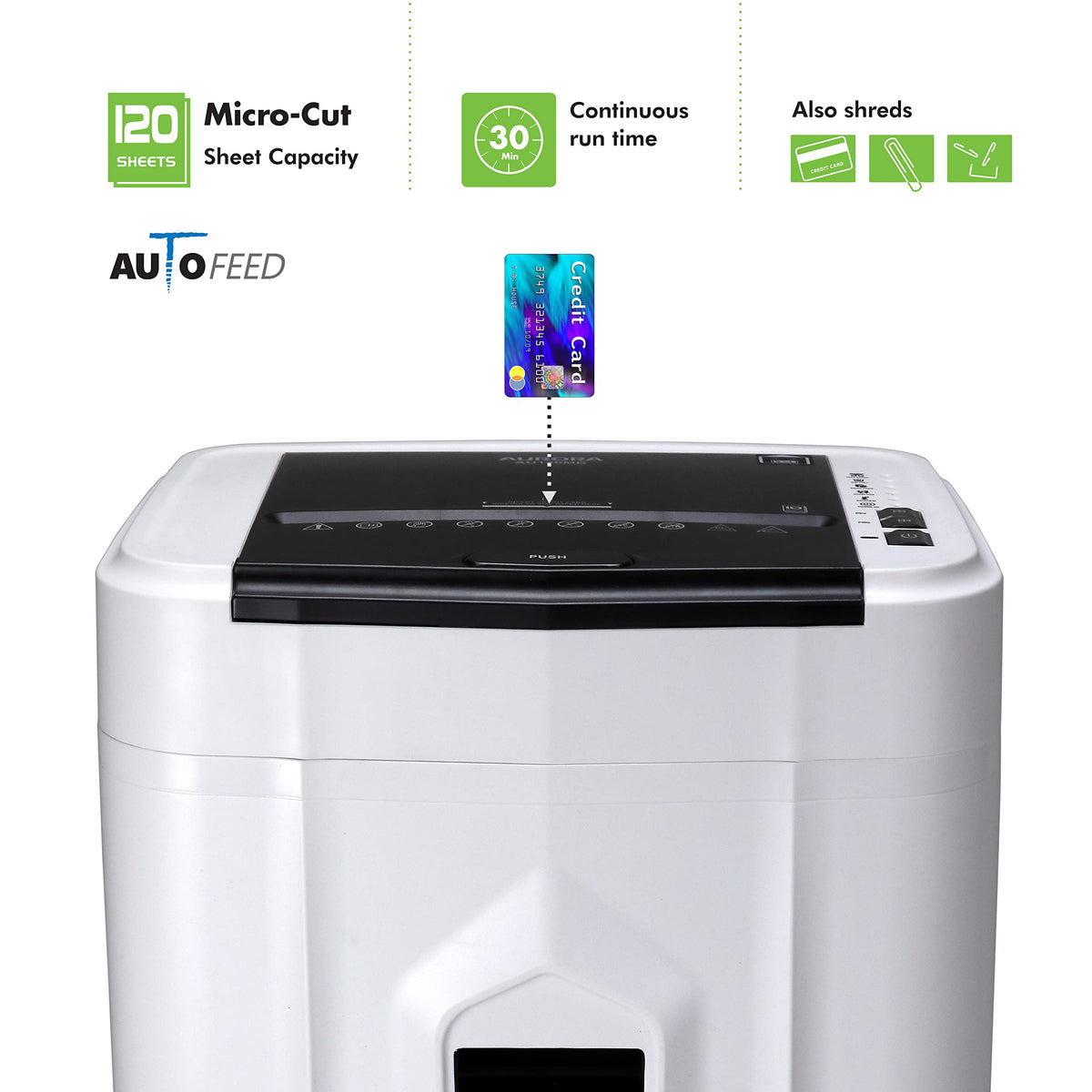 Aurora Au120Mb 120 Sheet Auto Feed High Security Micro Cut Paper Shredder / 30 Minutes (White/Black)