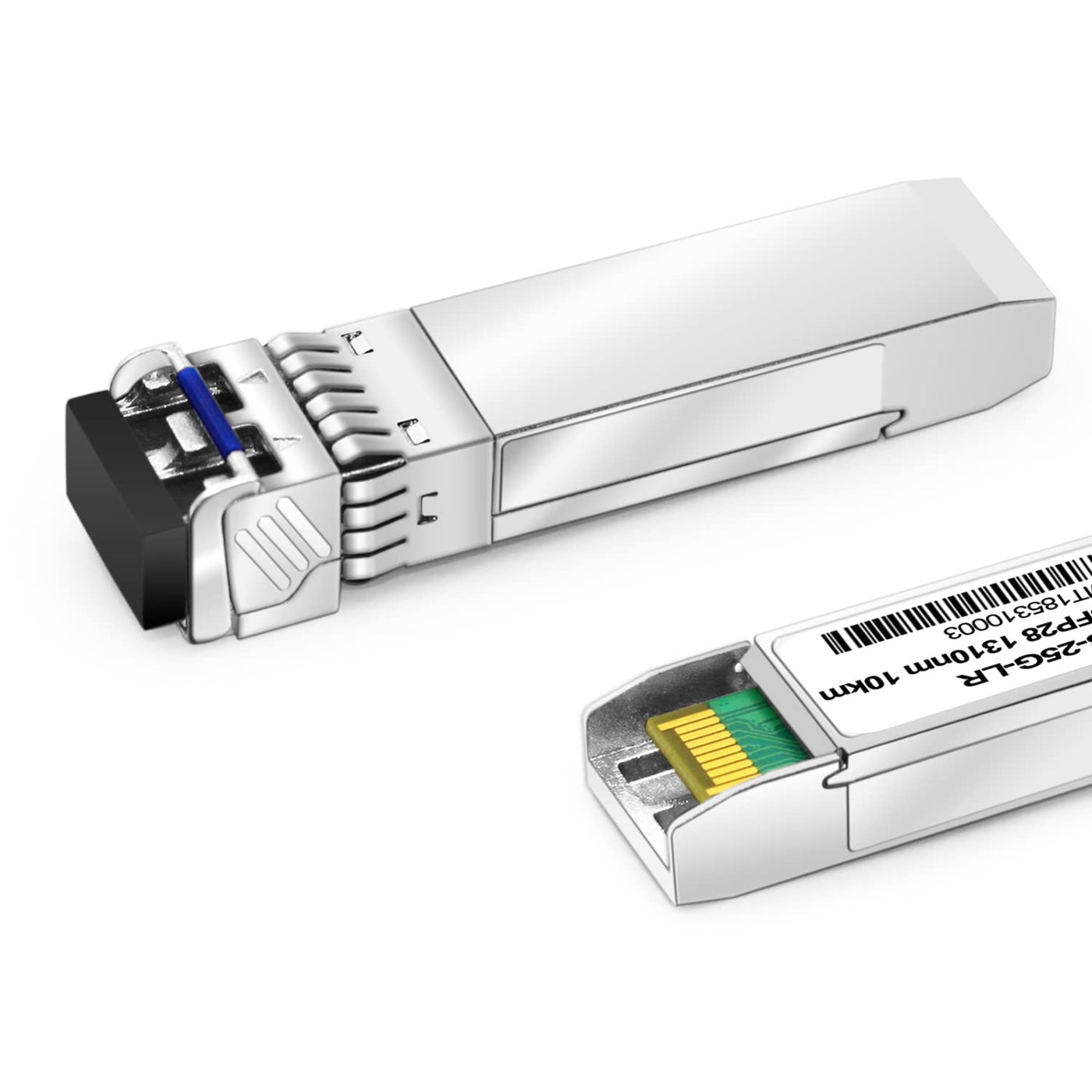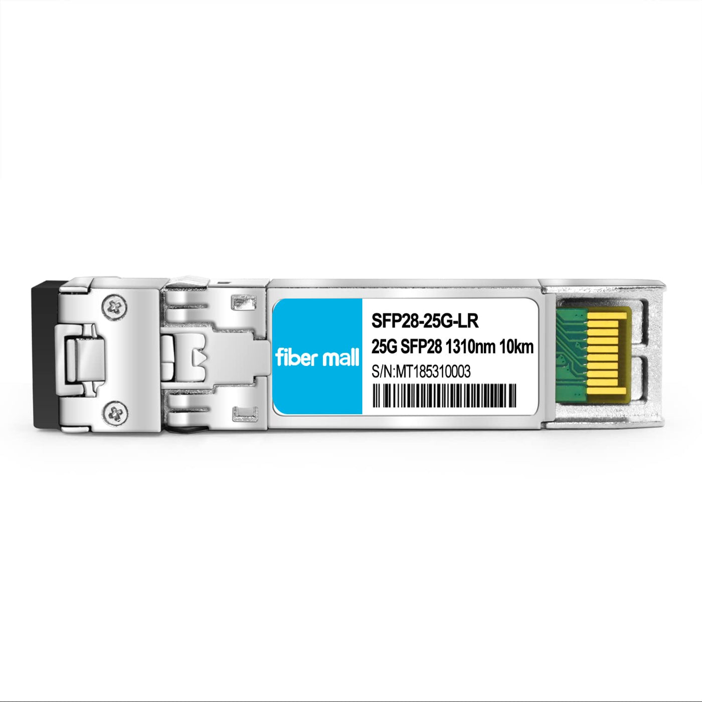 Q: What is the maximum transmission distance of the 25G SFP28 LR transceiver?A: The 25G SFP28 LR transceiver can transmit data up to 10 kilometers over single mode fiber (SMF) using a wavelength of 1310nm.