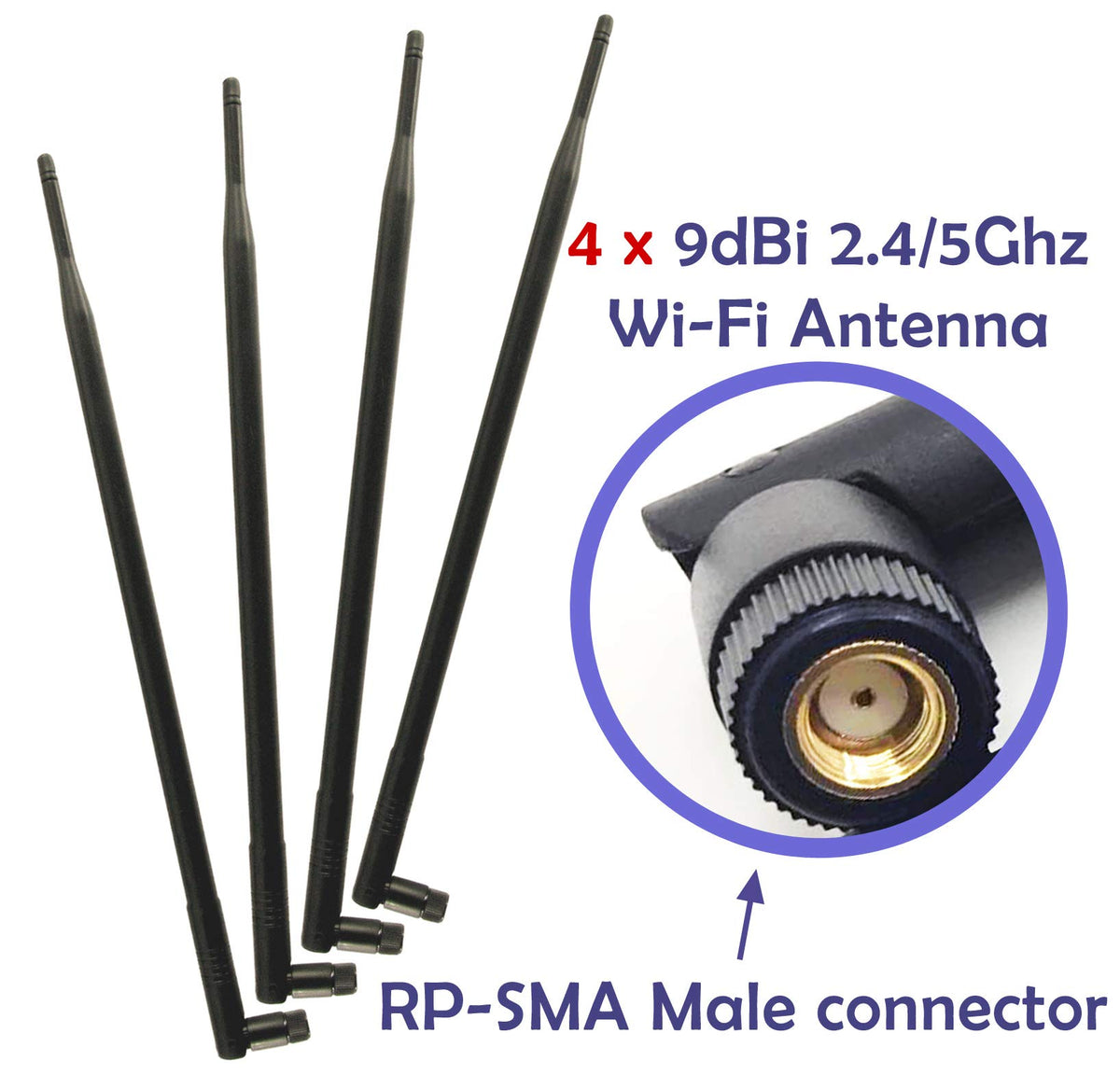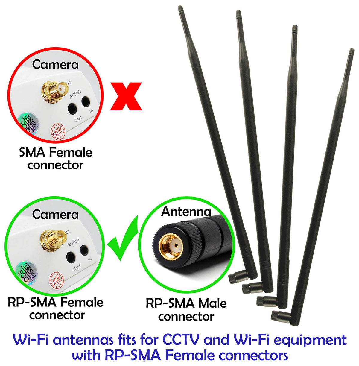 Package Includes: 4Pcs Of 9Dbi 2.4Ghz/5Ghz Dual Band Omni Directional Wi-Fi Antenna With Rp-Sma Male Connector For Ip Camera, Cctv Systems, Nvr And Wireless Network Devices. Note: Change All The Antennas Into Our 9Dbi Antennas, If Your Cctv Equipment Kit Has More External Wi-Fi Antennas