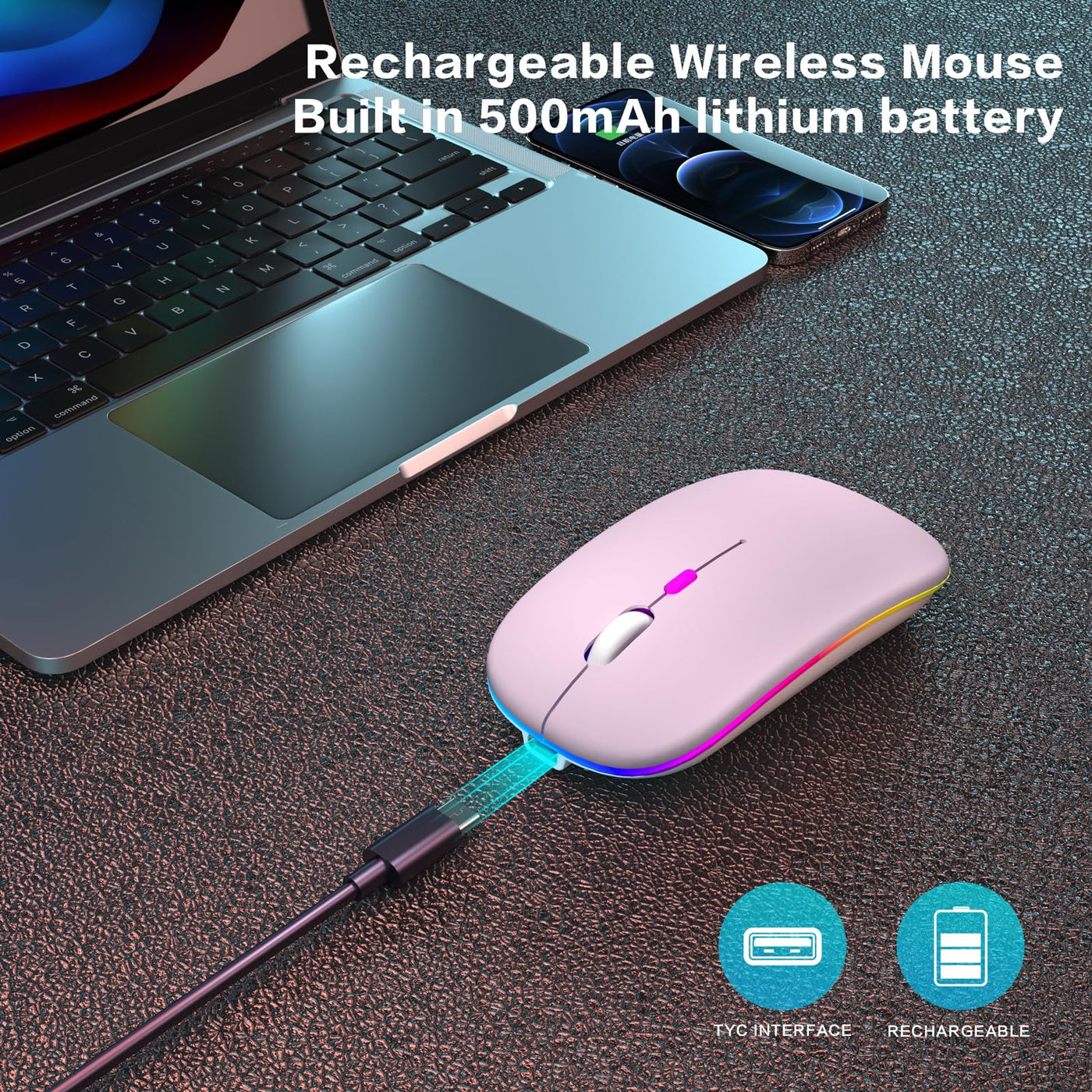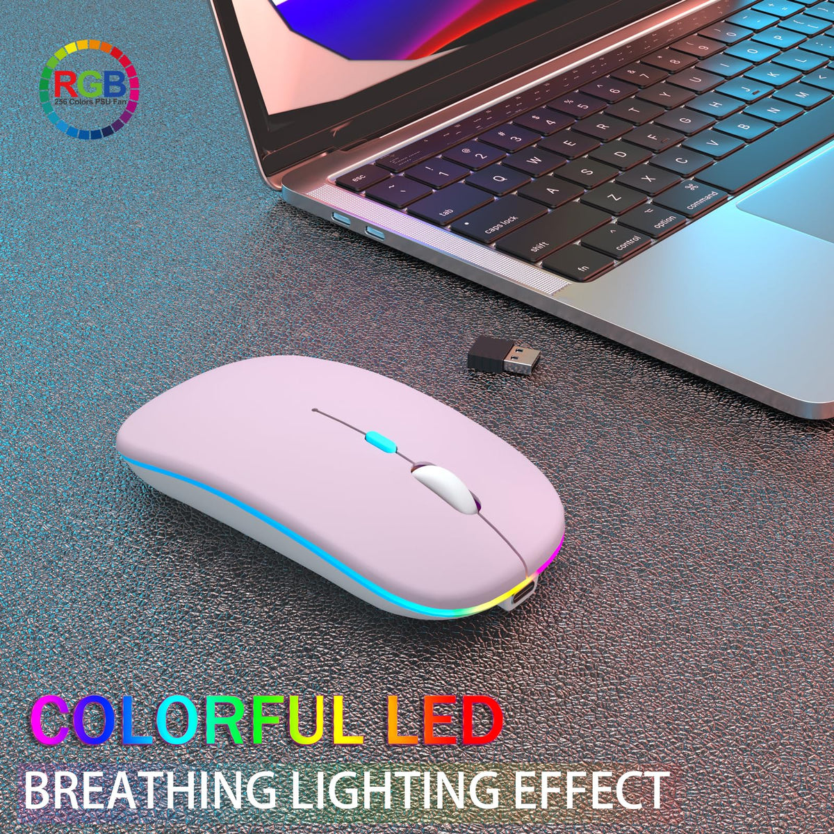 Wireless Bluetooth Mouse Rechargeable Dual Mode (Bluetooth 5.2/3.0+Wireless Usb2.4G) With Led Color Atmosphere Lamp? Note: Light Up Mouse Wireless It Cannot Be Set To A Specific Color.One Cordless Mouse, Multiple Devices Just Press The Mode Toggle Button On The Bottom Of The Mouse And You Can Control The One You Want. Note: Rechargeable Mouse Can'T Use Bluetooth Mode And 2.4G Mode At The Same Time. Led Wireless Mouse Broad Device Compatibility Windows?Windows Xp?Vista?7?8?10 /Windows Vista/Windows Me, Android 5.0 Or Higher, Mac Os X10.10 Or Higher, Apple/Ipad/Iphone Ios 13 And Above, Chrome Ostm, Linux Etc. Rechargeable Function: Mouse Laptop Built-In 500Ma Rechargeable Lithium-Ion Battery, Wireless Mouse Rechargeable Provides More Can Use Than 5 Days Of Working Time And 30 Days Of Standby Time, High Cycle Life. Mouse For Laptop It Can Be Easily Charged With The Included Usb Cable, No Need To Replace The Battery. Rechargeable Mouse Supports Charging While Using, More Energy-Saving And More Convenient. Portable: The Silent, Fingerprint-Proof,Lightweight And Slim Design Makes It Ideal For Travel And Fits Easily In A Laptop Bag Or Pocket,Carry.(Slim Wireless Mouse Dimensions : Size About 4.5 X 2.4 X 1.2 Inch) Package Included: 1 X Optical Computer Mice 1 X 2.4G Usb Receiver (The Usb Receiver Is Stored Inside The Back Of The Mouse) 1 X Usb Charging Cablenote: The Instructions Are On The Back Of The Box?