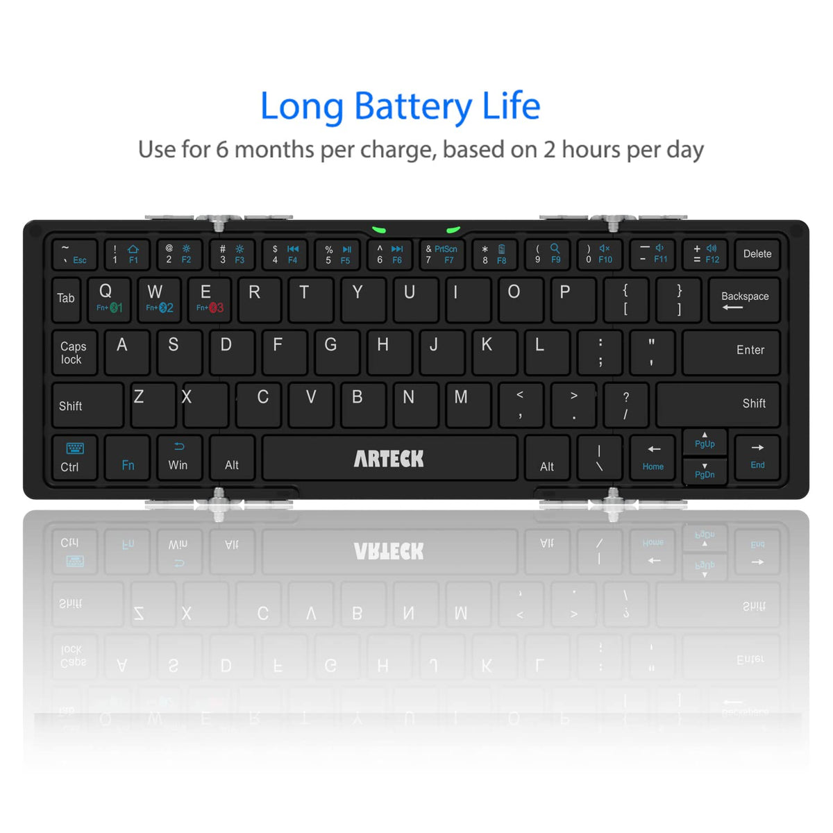 Q: Is the Arteck Folding Bluetooth Keyboard compatible with all devices?A: Yes, the Arteck Folding Bluetooth Keyboard is cross-platform compatible and works seamlessly with iOS, Android, Windows, and Mac OS devices, including tablets and smartphones.