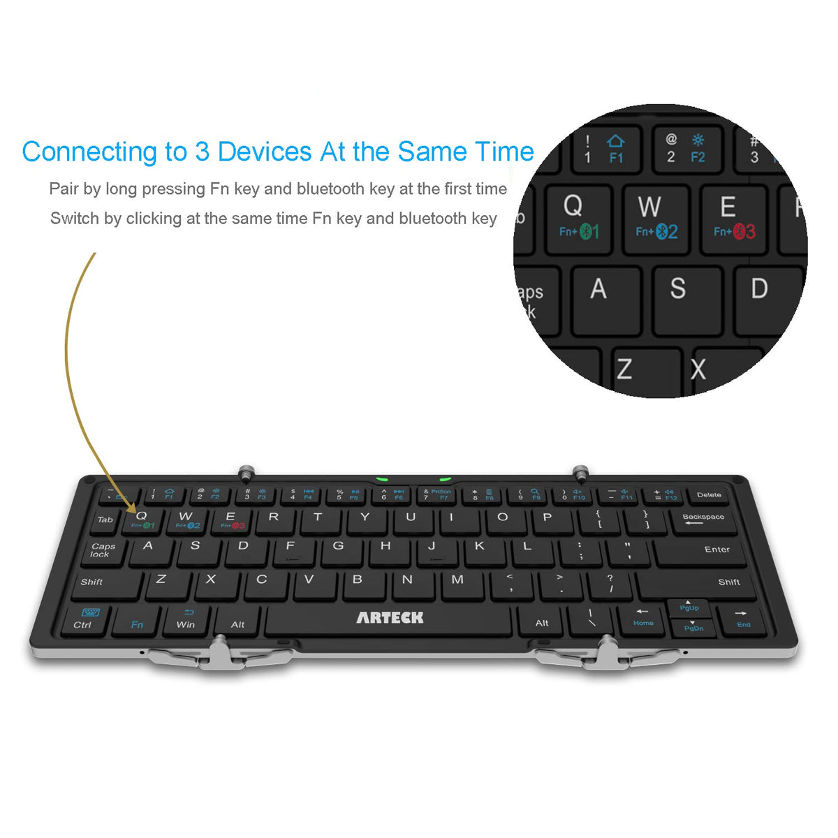 Arteck Folding Bluetooth Keyboard, Portable Mini Foldable Wireless Keyboard For Ios Ipad 10.2 Inch, Pro, Air, 9.7 Inch, Mini, An