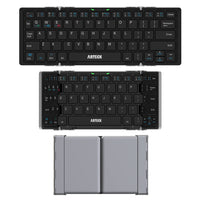 Q: What are the dimensions and weight of the keyboard?A: The Arteck Folding Bluetooth Keyboard measures 9.92 inches in length, 0.39 inches in width, and weighs only 0.41 pounds, making it portable and easy to carry.