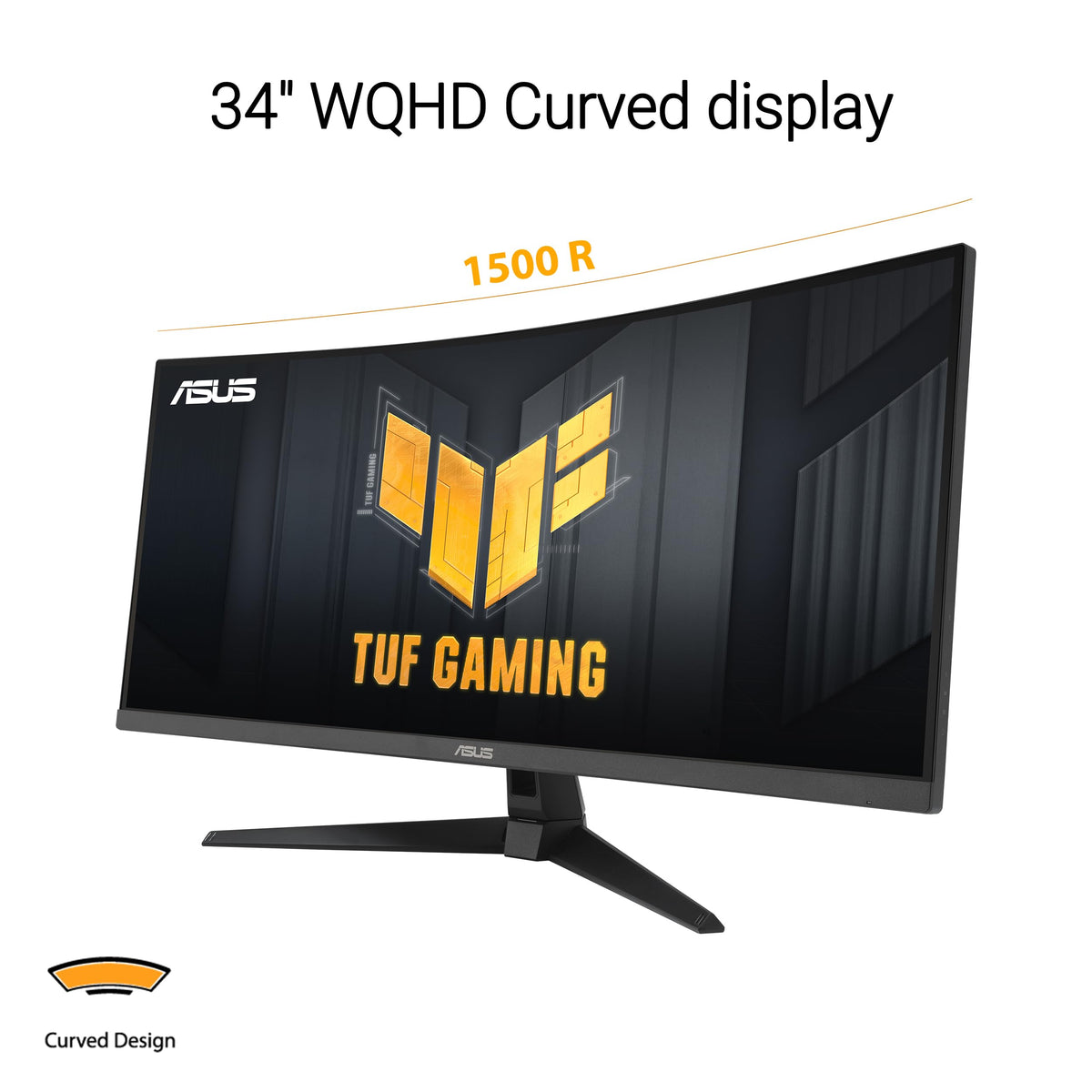 Q: What is the resolution of the ASUS TUF Gaming VG34VQ3B monitor?A: The monitor has a QHD resolution of 3440 x 1440, delivering sharp and detailed images for an immersive viewing experience.
