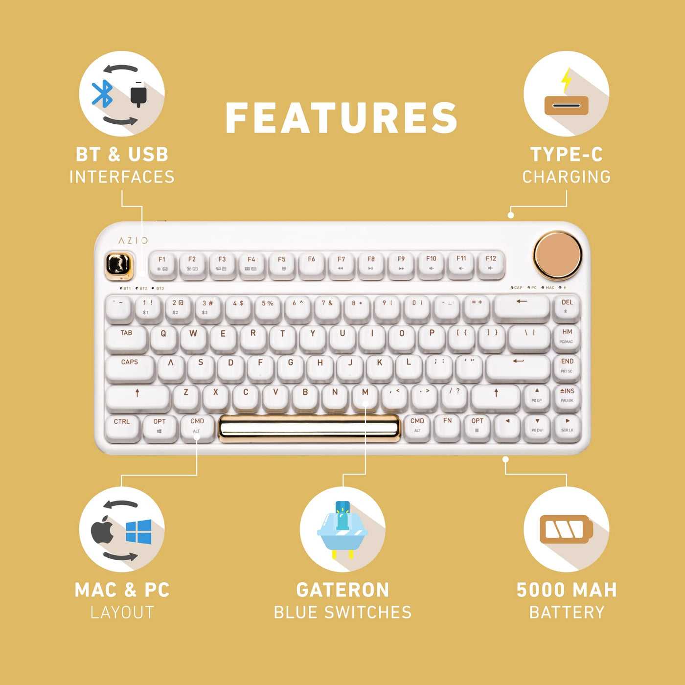 Azio Izo Wireless Bt5/Usb Pc & Mac Mechanical Keyboard, White Blossom