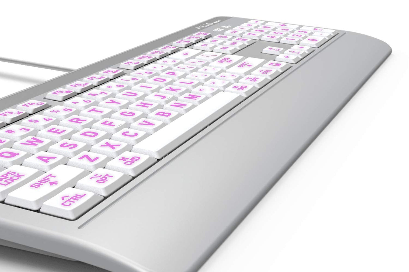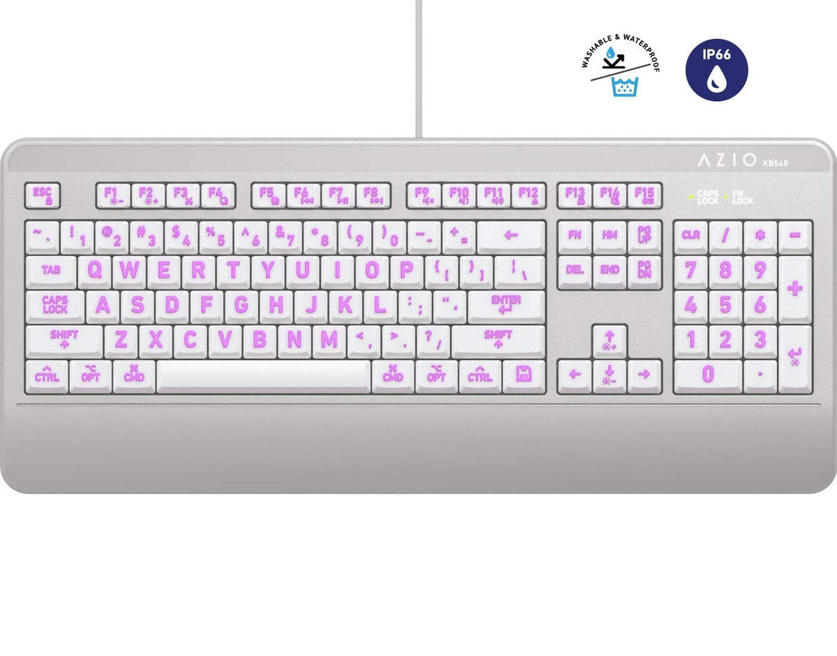 Azio Vision Mac Usb C Keyboard, Backlit/Large Print, 3 Interchange Backlight Colors, Blue/Red/Purple (Kb540)